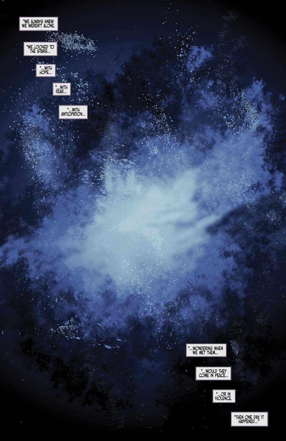 Vince Brusio: Is there any specific research or questions that you’ve had regarding aliens and alien technology that worked their way into your storytelling? Or are you working more from an allegorical perspective?