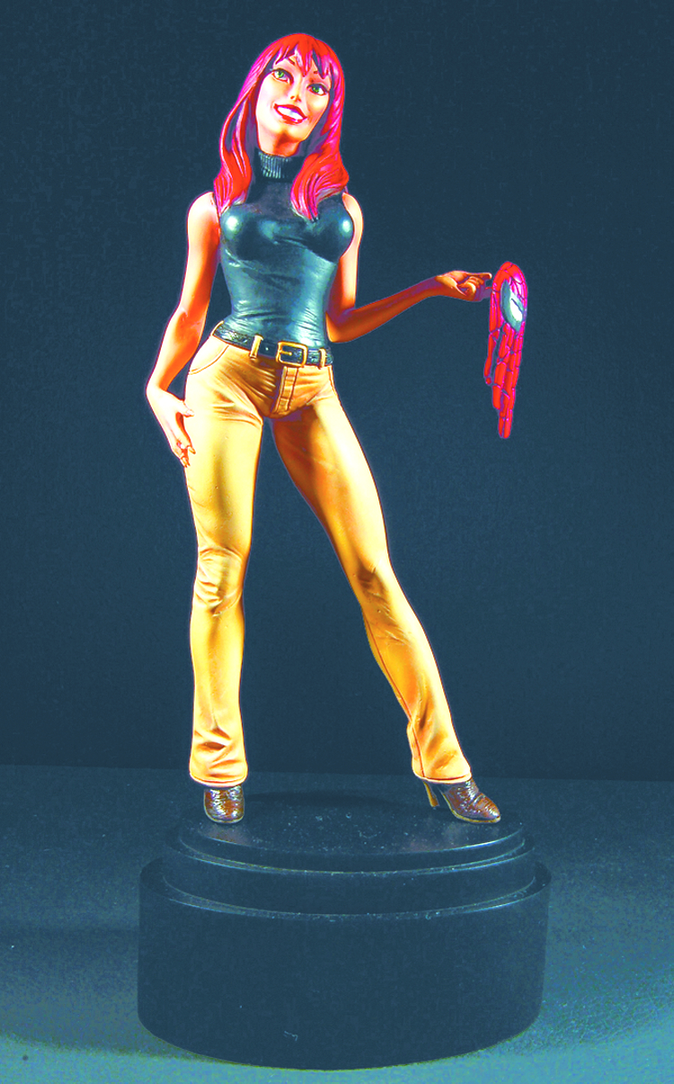 She's the only red-haired babe who's allowed to call Peter Parker "tiger." She's also the drop-dead gorgeous chick with the figure that never quits! It's the beautiful Mary Jane Watson who holds ol' Webhead's mask on her fingertip. Sculpted by Tony Cipriano, she stands approximately 12" tall. Painted and ready to display.