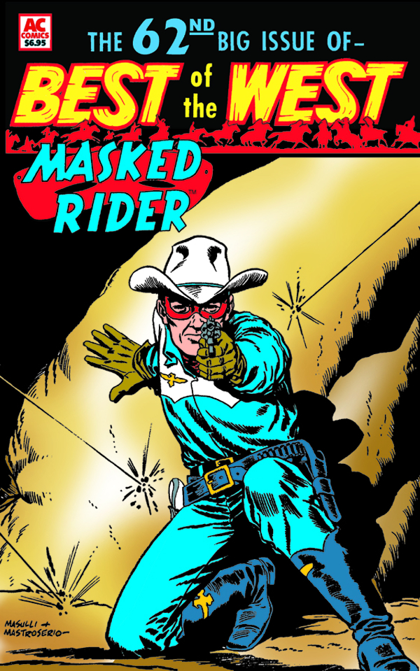 Classic Western adventure abounds with the cover-featured Masked Rider in "Tightrope of Fear," drawn by prolific Pete Morisi. Meanwhile, the Durango Kid stars in "The Crooked Irons," American Eagle puts an end to "The Renegades," and Lazo Kid faces "The Remuda Rustlers." Plus, vintage adventures featuring fan-favorite characters Red Mask and Haunted Horseman! Fans of classic action and Golden Age comics history will appreciate contributions from Gardner Fox, Joe Gill, Ray Krank, Dick Ayers, Frank Bolle, Ted Galindo, Pete Morisi, Joe Certa, and Marvin Stein!
