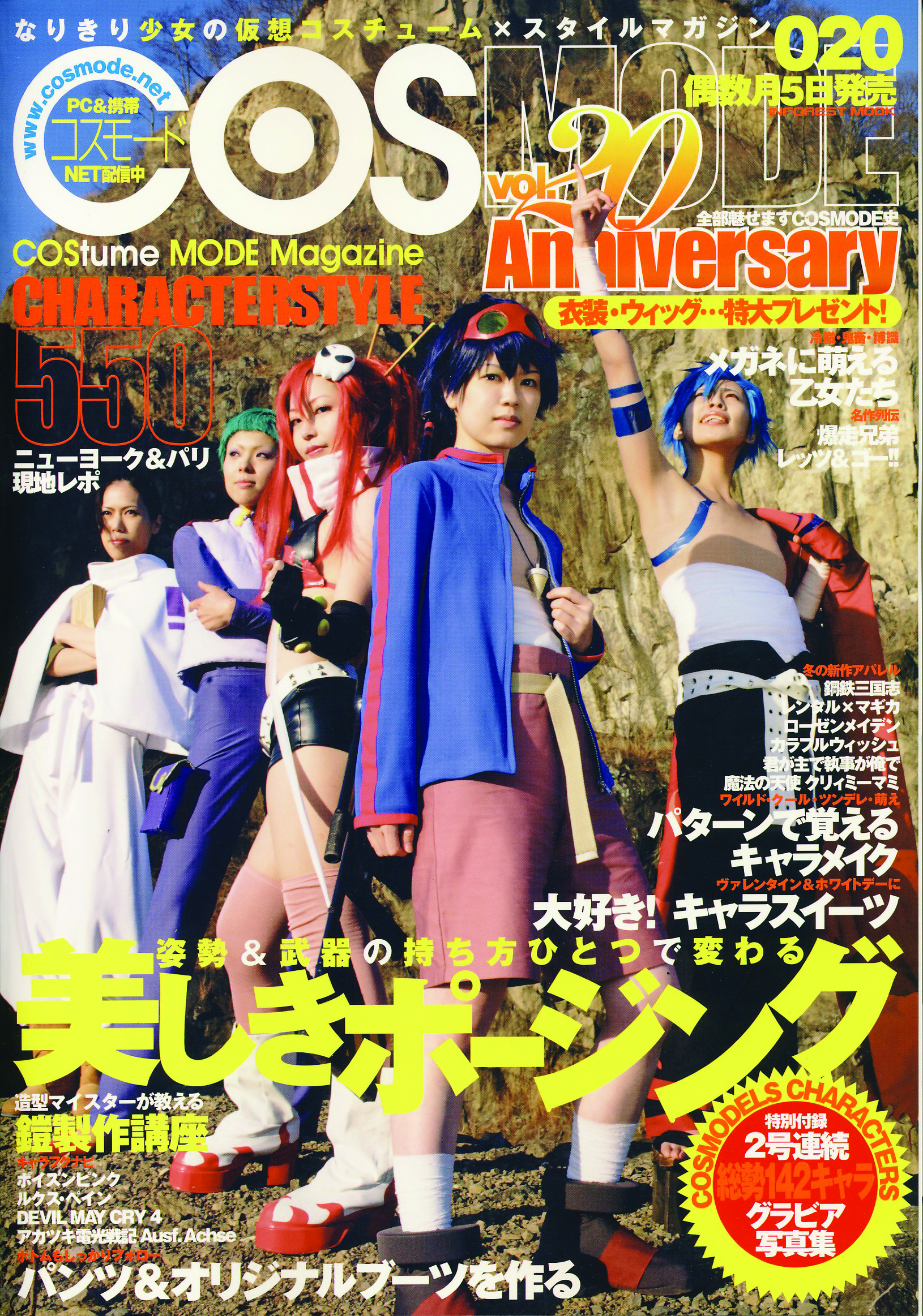 Cosmode, the costume and mode magazine, is filled with pictures of anime fans and cosplay maniacs in their favorite costumes! Inside, you'll find useful hints to brush up your cosplay techniques, plus articles by professional make-up artists and costume creators. Japanese text.