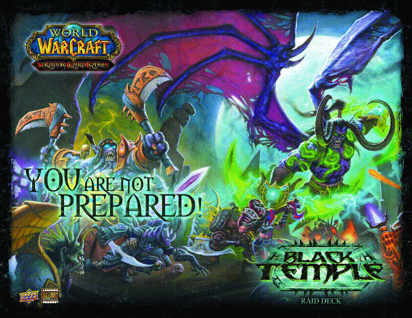 Black Temple Raid Deck! Each Raid Deck comes with 100 boss player cards, 12 exclusive treasure pack cards, and nine oversized hero cards. Offered in 6-count displays.