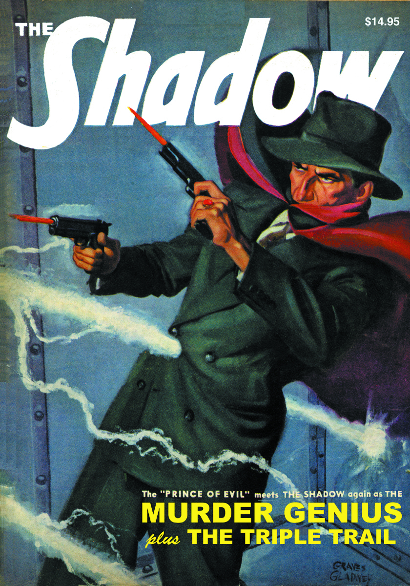 The Master of Darkness follows "The Triple Trail" that could lead to a million-dollar art treasure, in one of Walter Gibson's all-time greatest masterpieces of misdirection! Then, The Shadow attempts to rescue his loyal agent from the clutches of the "Murder Genius" in Theodore Tinsley's violent sequel to "The Prince of Evil." Plus, a thrilling adventure of Police Commissioner James Gordon, a.k.a. The Whisperer!