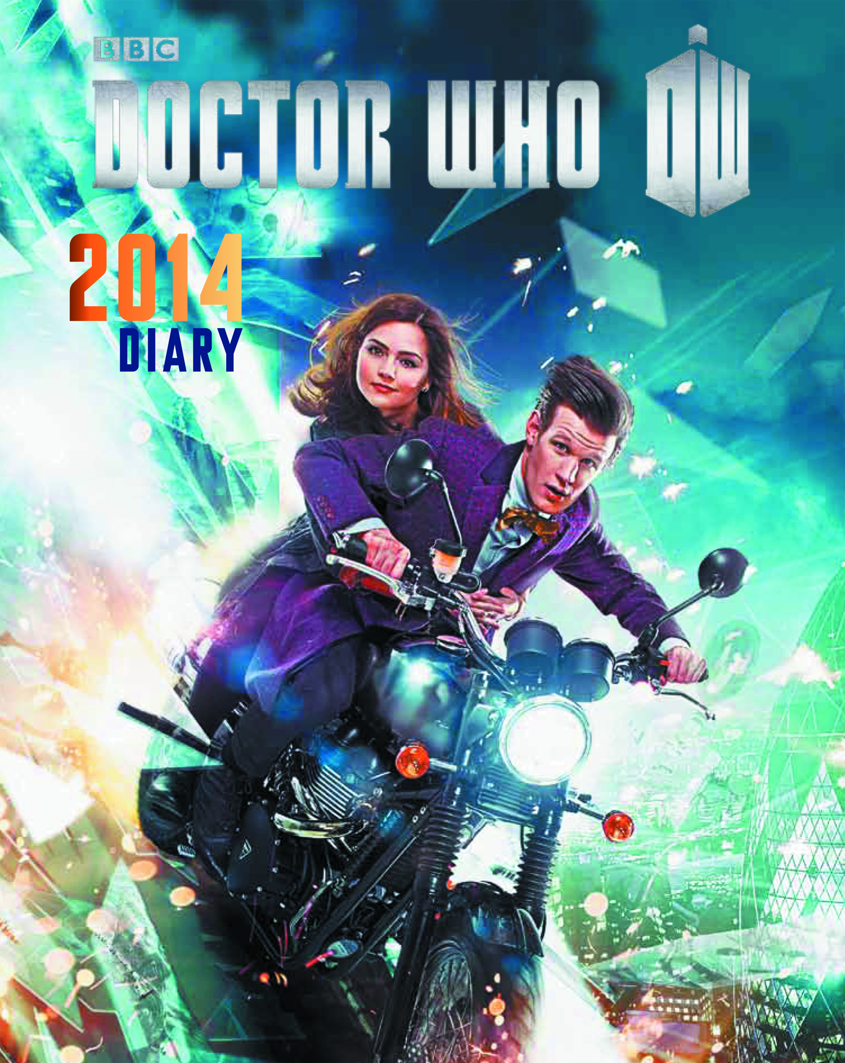 A PREVIEWS Exclusive! The 2014 Doctor Who Diary covers the first five episodes of Series 7, starring Matt Smith as The Doctor, with Amy Pond and Rory Williams as his companions who depart at the end of "The Angels Take Manhattan" and are replaced by the Doctor's new companion, Clara Oswald. The Doctor's adventures take him to a planet-wide asylum for mad Daleks, the Old West, 1938 New York City, and a Russian submarine in 1983. Along the way he encounters some disturbing Black Cubes, the Weeping Angels, the Ice Warriors, and new-look Cybermen. The Doctor gets a new costume in this series, and the TARDIS a new interior. The diary includes a synopsis for each episode, images from each episode, and descriptions for characters and monsters throughout. Double-page spread per week. A must for fans.