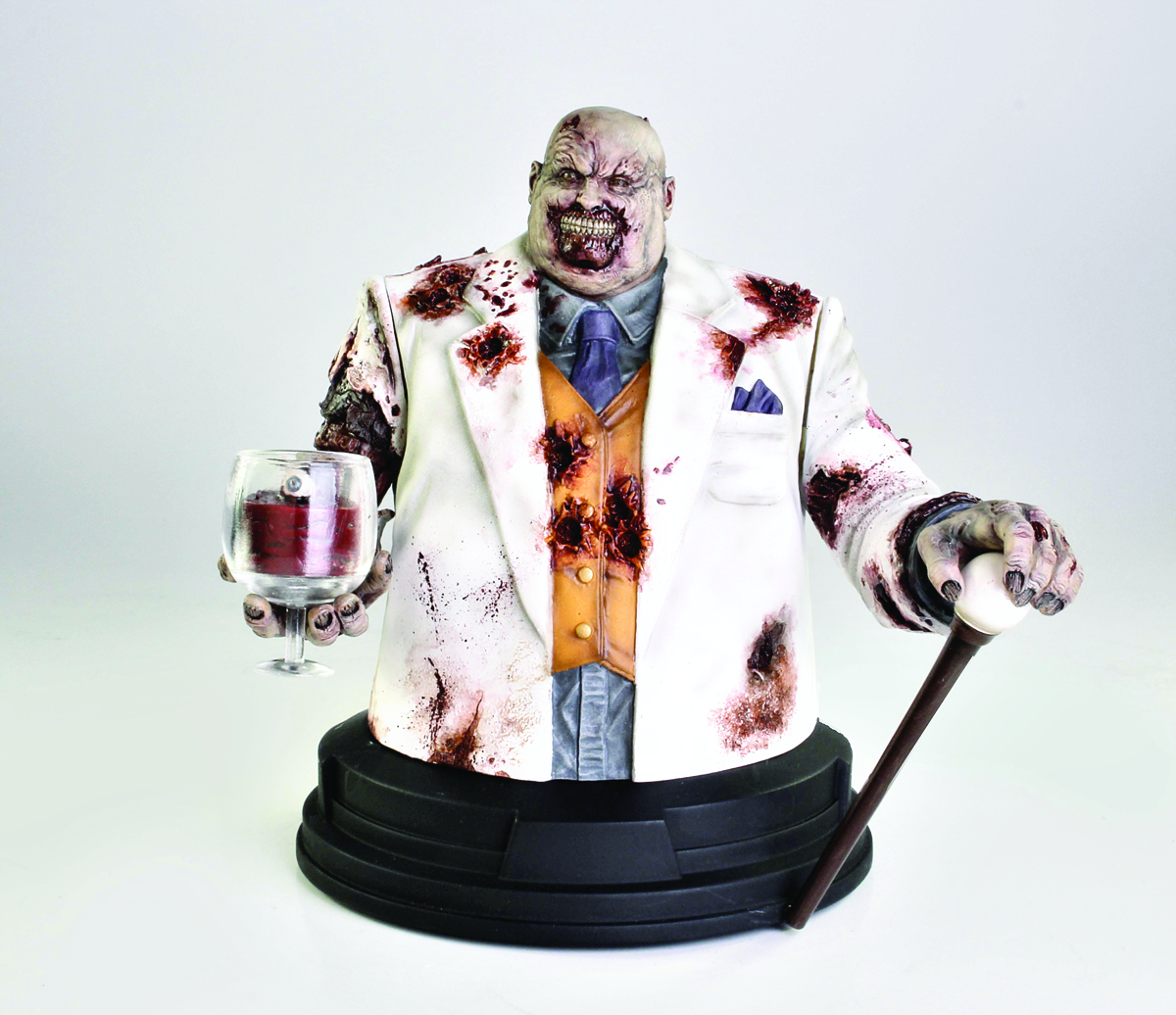 Marvel Zombies universe, the world has been infected by a virus that turns the living into rotting corpses who retain their intelligence and ability. The artists at Gentle Giant have sculpted the Zombiefied Kingpin with this new mini-bust.