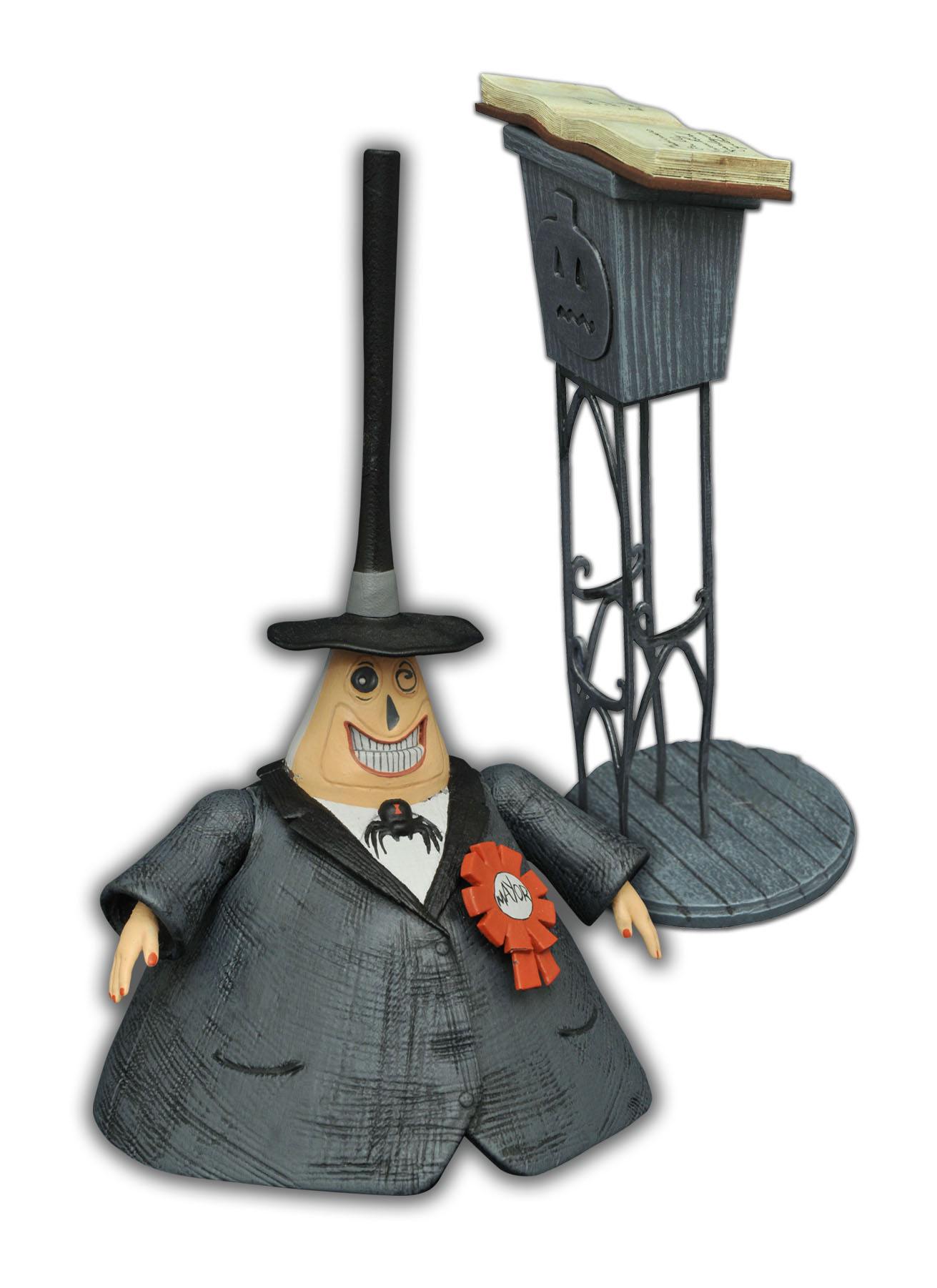 A Diamond Select Toys release! One of the hottest toy lines of 2015 returns for another series! Picking up where Series 1 left off, Series 2 of Nightmare Before Christmas Select action figures features Santa Jack, the Mayor and Dr. Finkelstein, each in an approximately 7" scale. Dr. Finkelstein includes a rolling wheelchair, The Mayor comes with his tall podium, and Santa Jack comes with his sack of presents. Jack and Finkelstein each include a piece of a courtyard diorama - collect all five pieces in Series 2 and 3 to build the courtyard and fountain! Each figure features multiple points of articulation, and comes packaged in display-ready Select packaging, with side panel artwork. Sculpted by Dave Cortes!