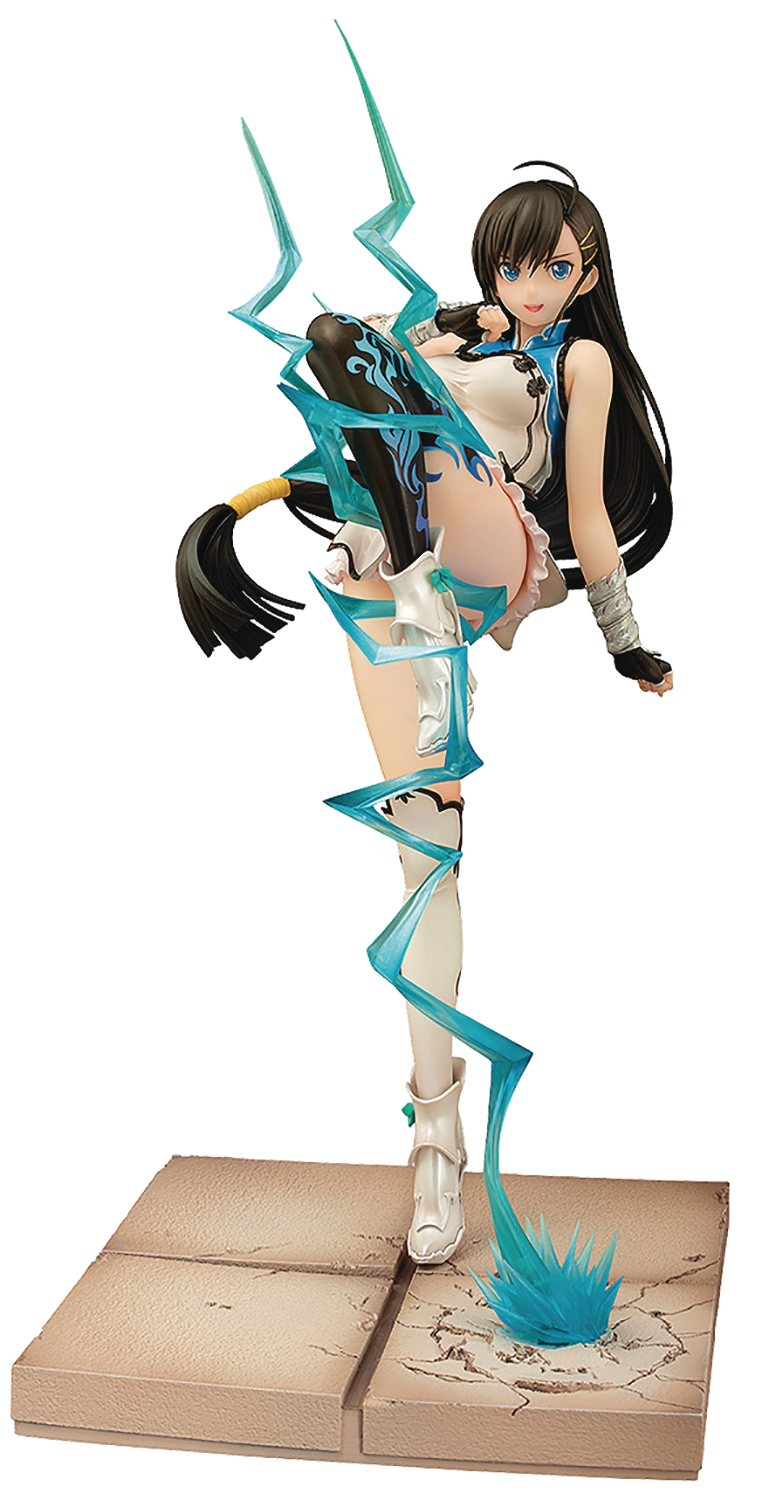 Blade Arcus from Shining EX comes a 1/7-scale figure of the Seiryuuken user that controls the blue-white lightning, Pairon! The figure has been sculpted in a bold pose that shows off her impressive curves and the details of her outfit, all based on character designer Tony's original illustrations. Translucent effect parts are included to capture the lightning effects of her attacks to create a dynamic figure that fans will be proud to add to their collection!