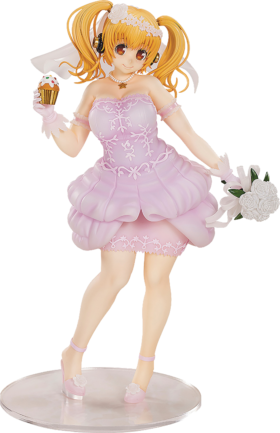 Super Pochaco has been transformed into a 1/5-scale figure wearing a wedding dress! The figure is based on an illustration by character designer Tsuji Santa and has taken care to capture his style as carefully as possible, with great attention given to the smaller details of the outfit and colors of the figure! Be sure to enjoy Pochaco's lovely dress and impressive curves by your side whenever you like!