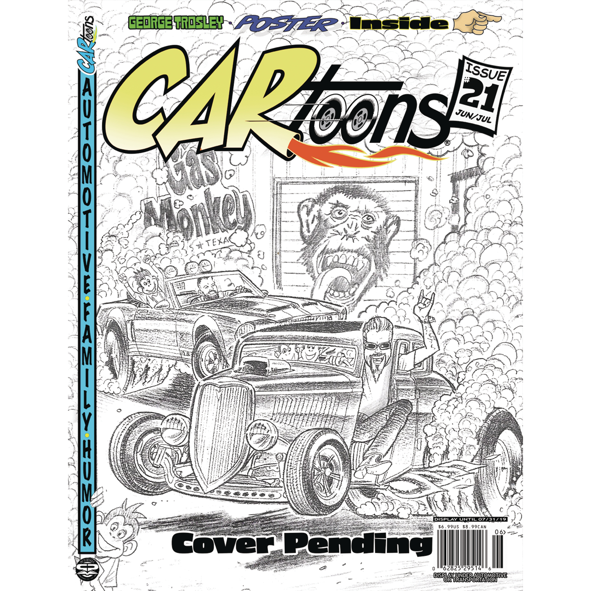CARtoons, so let's celebrate together. Issue #21 has a lot of surprises that you don't  want to miss out on. We are celebrating by starting off with this amazing Gas Monkey Garage  Cover illustrated by George Trosley. 64 pages of pure automotive family friendly humor. If you love cars and comics, you will love