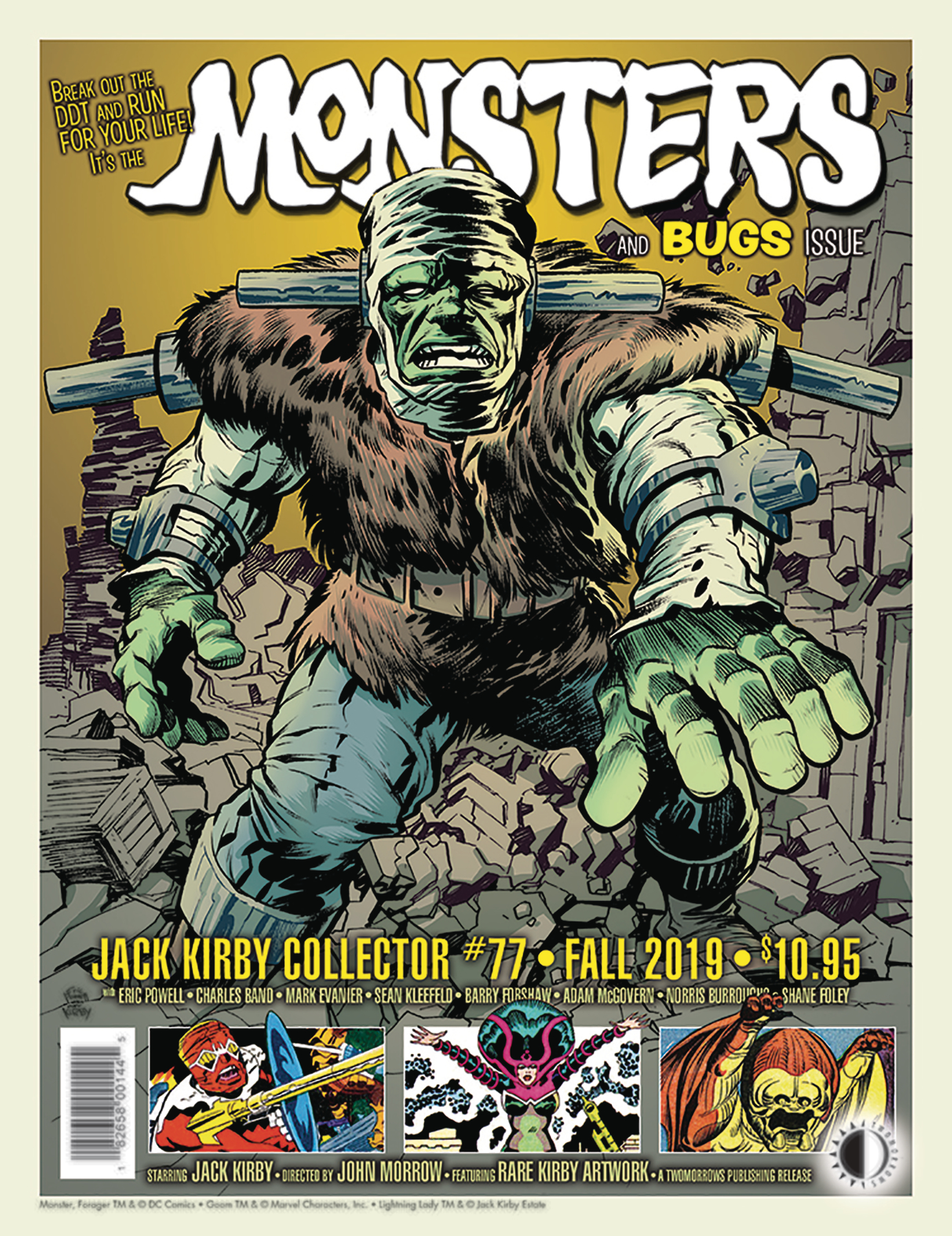 The Goon creator Eric Powell about his Kirby influences! A look at Kirby's use of insect characters, especially as villains! Also Mark Evanier and our other regular columnists, a Golden Age Kirby story, and a gallery featuring Jack's amazing pencil art! Kirby/Eric Powell cover!