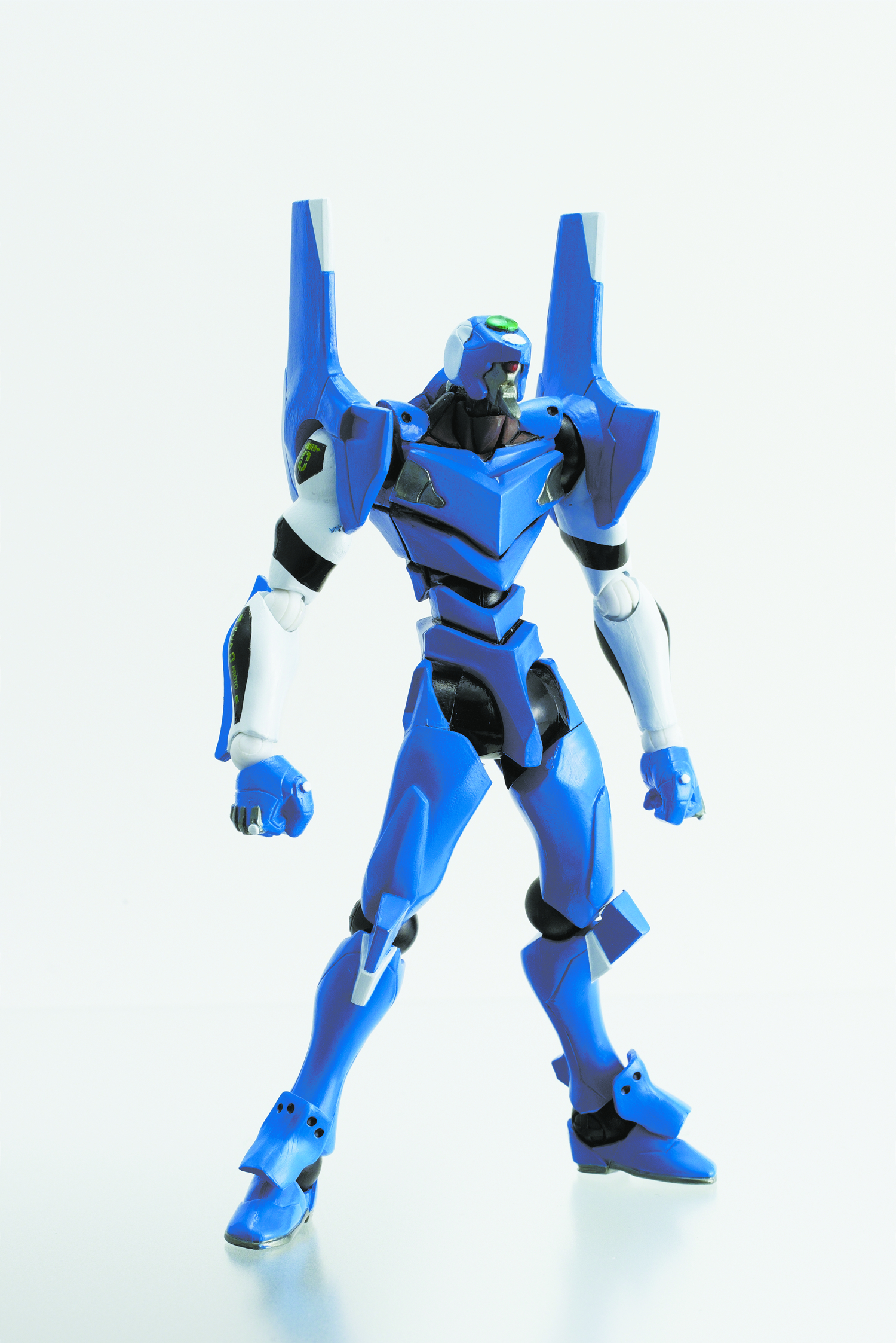 Evangelion series, piloted by the first child, Rei Ayanami. Each Revoltech action figure includes numerous weapons and accessories (the Ingram includes a display stand). Window box packaging.