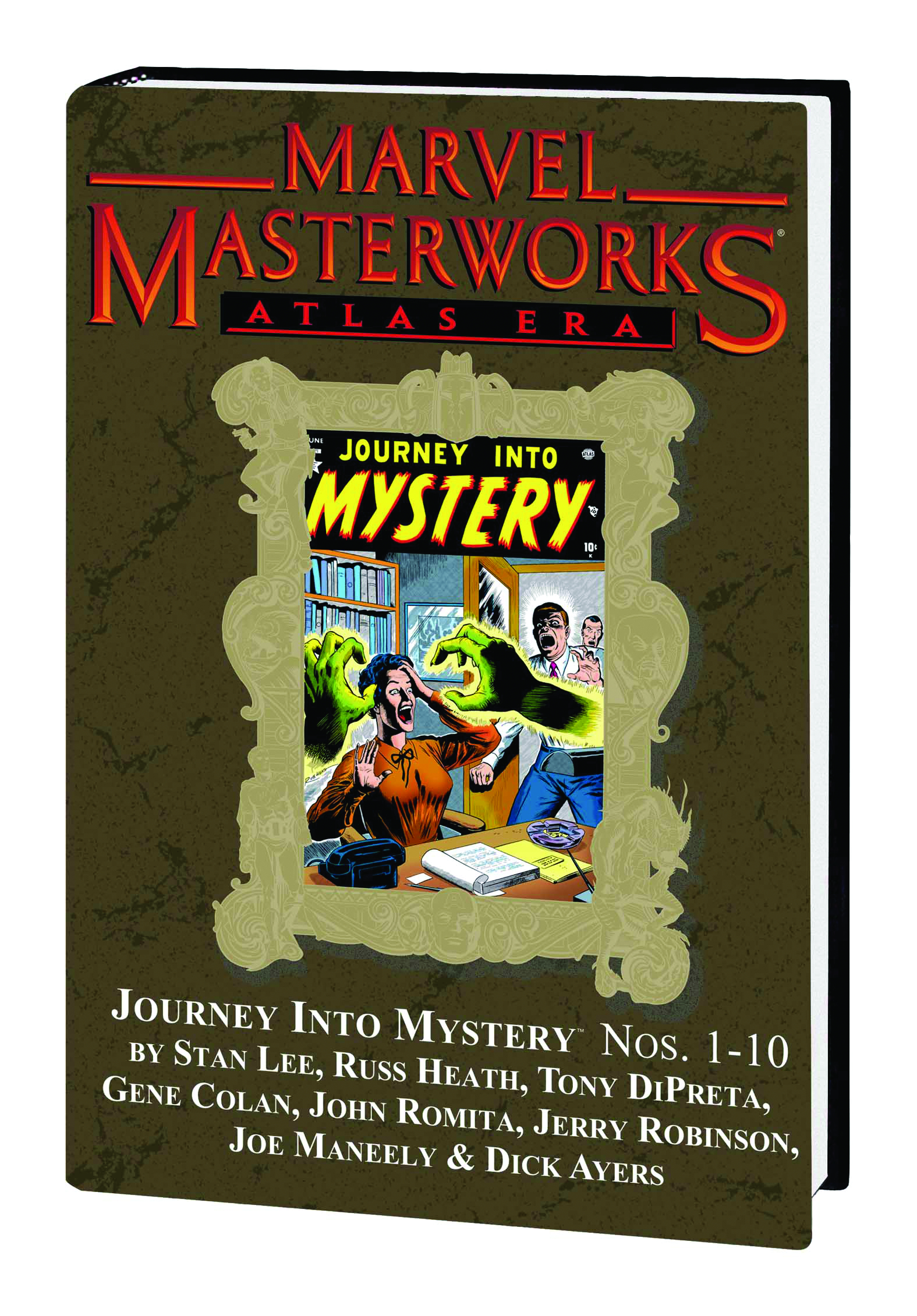 The MARVEL MASTERWORKS are taking a macabre JOURNEY INTO MYSTERY this October, and you're invited! It's a ten-issue fright fest from the pre-Code days when the scare reigned supreme, and the only thing more horrific than not having a dime in your pocket were the stories inside! Featuring artwork by a collection of the Atlas Era's finest, you'll be wowed by the gruesome turns of future Marvel Age greats Gene Colan, John Romita and Dick Ayers, and taken into a whole new world of horror by such titans of the 1950s as Joe Maneely, Tony DiPreta, Paul Reinman, Jay Scott Pike and more! So take one foot out of the grave, wrap your hands around a murderous intent to scare, and reserve your copy today! Collecting JOURNEY INTO MYSTERY #1-10.