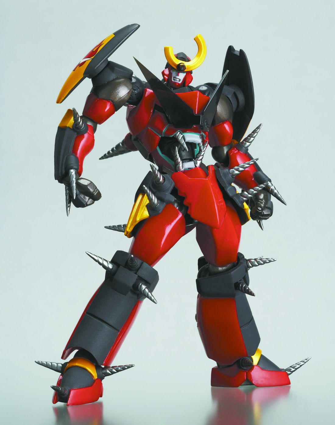 Gurren Lagann was built as a response to the invading Enki's initial two-headed configuration. The figure stands nearly 6" tall, has 54 articulation points with 19 joint parts, and comes with core drill, optional pair of sunglasses, 4 optional hands, an optional head, and display base.