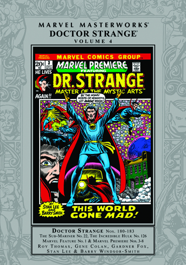 The Master of the Mystic Arts, Dr. Stephen Strange once again descends into to the eldritch depths of adventure in this amazing collection of Marvel Masterworks! Kicked off by Roy Thomas and the incomparable art team of Gene Colan and Tom Palmer, the good doctor battles his greatest adversary, the towering cosmic presence of Eternity. Although his solo series ends, Dr. Strange's saga against the Undying Ones continues as he teams-up with Sub-Mariner and the Incredible Hulk in a storyline that lays the seeds for the dynamic Defenders! Then, Stan "The Man" Lee and Barry Windsor-Smith raise the Sorcerer Supreme to new heights of otherworldly glory in the all-time classic Marvel Premiere series. Guided by Golden Age great Gardner Fox and a host of up-and-coming art talents from Frank Brunner to P. Craig Russell, Dr. Strange runs a gauntlet of Lovecraftian horrors from the depths of the ocean to the monoliths of Stonehenge in pursuit of Shuma-Gorath. After four volumes of Marvel-ous Masterworks, Doc Strange is just getting started! Collecting