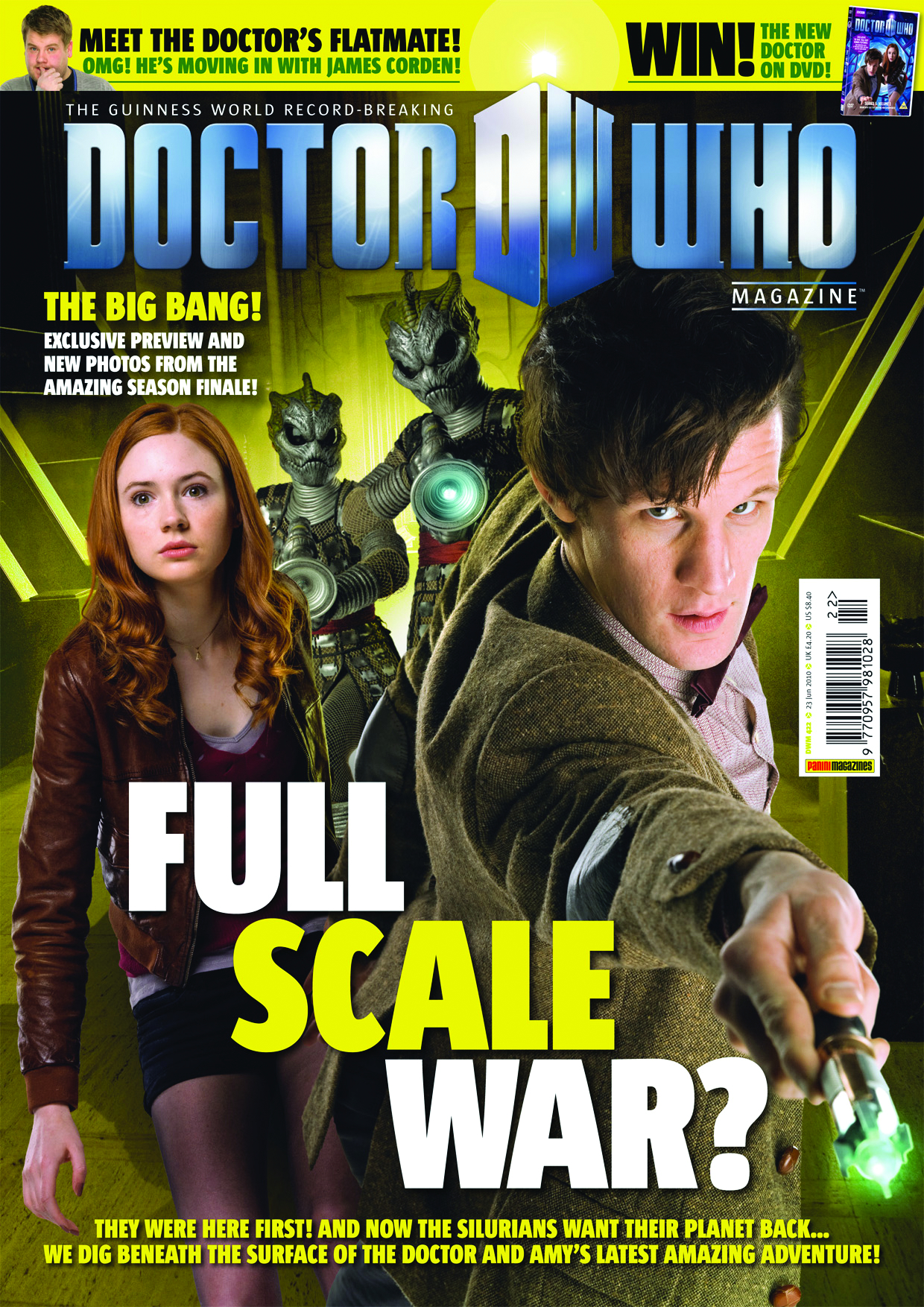 Sarah Jane; the brand-new full-color comic strip continues; Steven Moffat reveals behind-the-scenes secrets in "Production Notes"; and all the latest books, DVDs, and audios are reviewed.