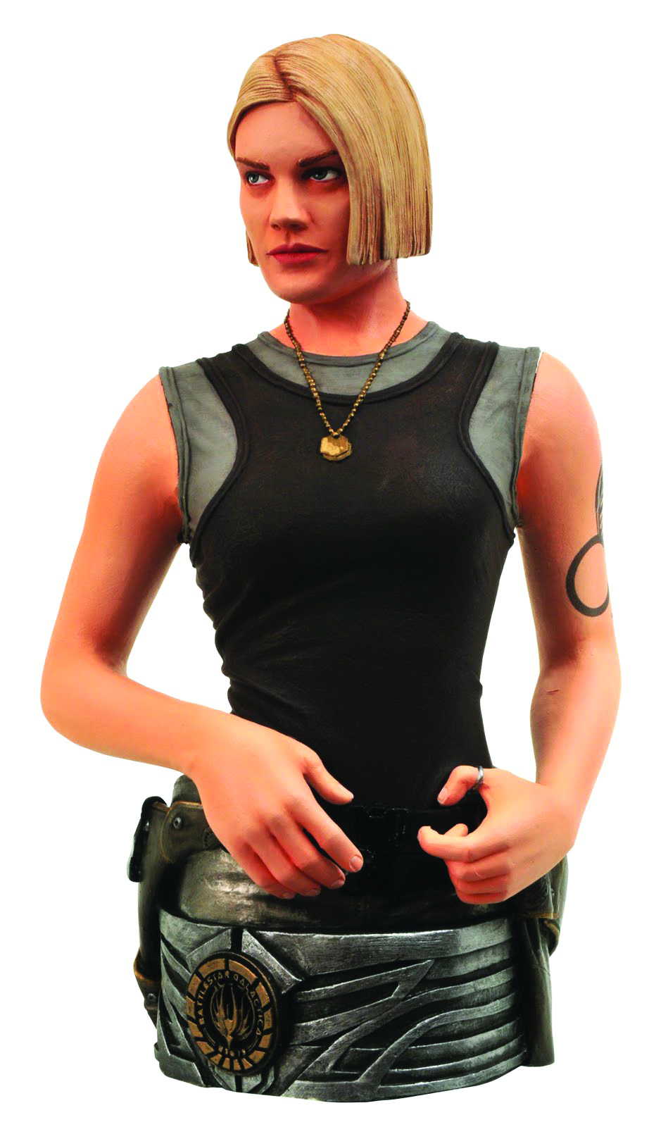 Battlestar Galactica played by Katee Sackhoff, this 6" mini-bust depicts the enigmatic Kara "Starbuck" Thrace in her Viper pilot attire, perfect for any media sci-fi collection! Limited to 1,200 pieces worldwide.
