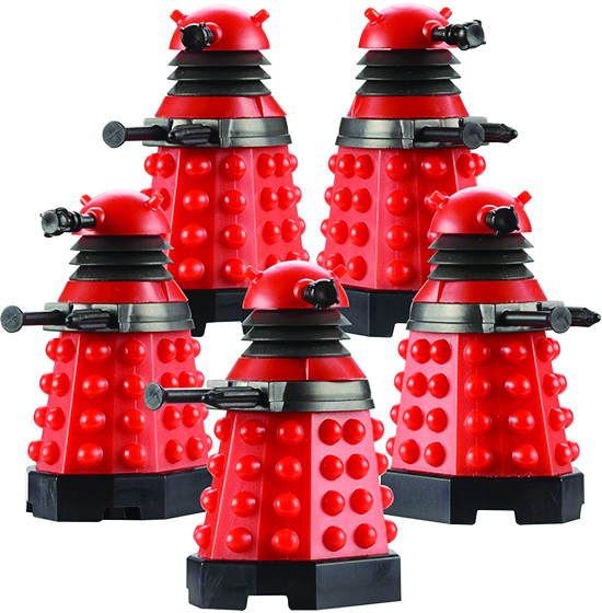 Imported from the UK! Exterminate! The Daleks were born without the ability to feel compassion or pity, and they are motivated only by hate, fear, and an implacable belief that they are the most superior creatures in the universe. Recreate epic battles with the Eleventh Doctor or build your own army of Daleks with this 5-pack of Dalek minifigs for the