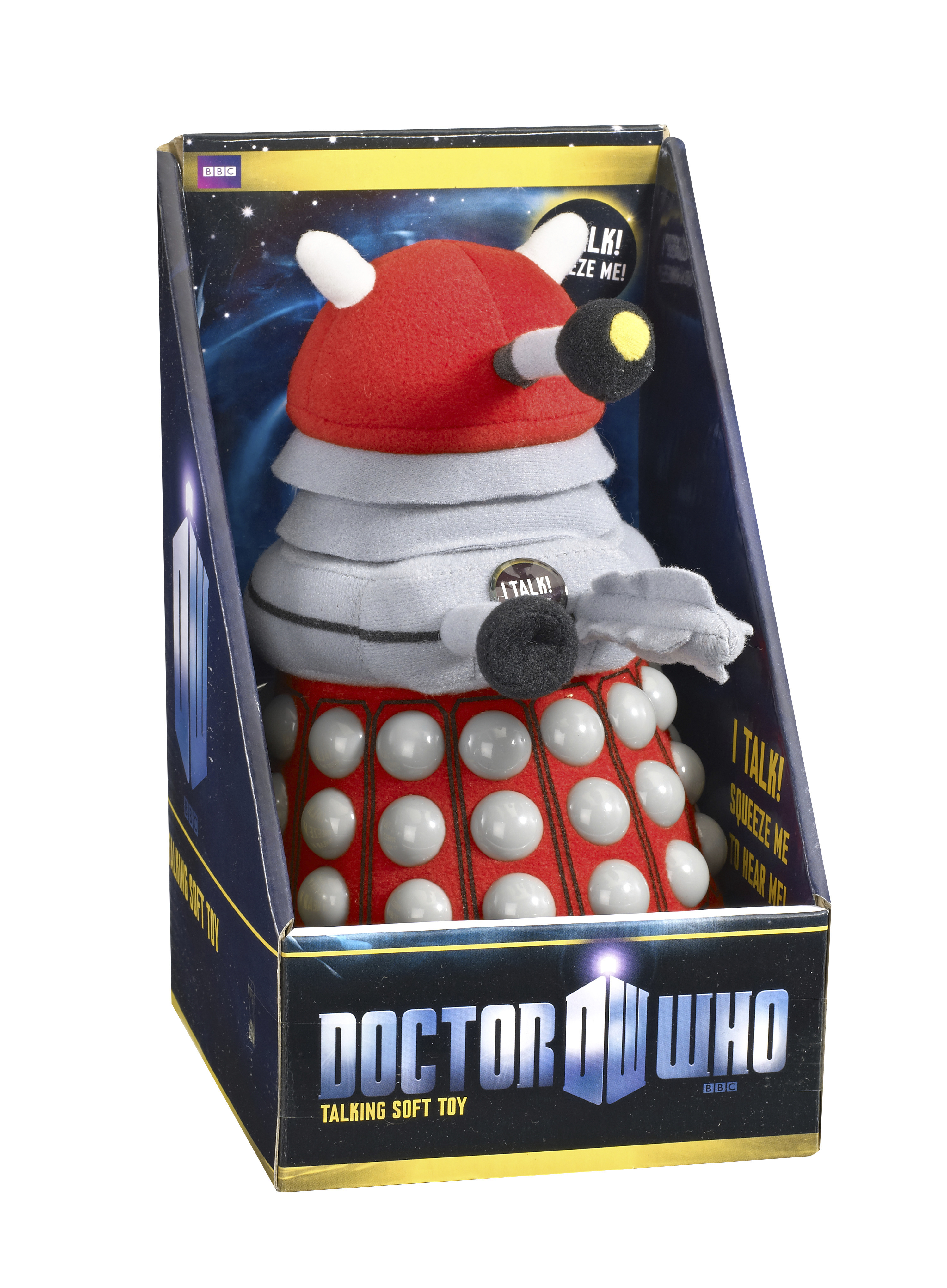Imported from the UK! The Dalek may be the most perfect evil ever created, and on a million words the very name "Dalek" is spoken in hushed tones as billions cower at their approach. But you don't need to fear Underground Toys' Talking Dalek Plushes, which bring Davros' ultimate killing machine to life in a cute and cuddly form! Plus, give it a squeeze and it will tell you how much it wants to exterminate you! Choose from Red, Blue, Orange, or Yellow Daleks.