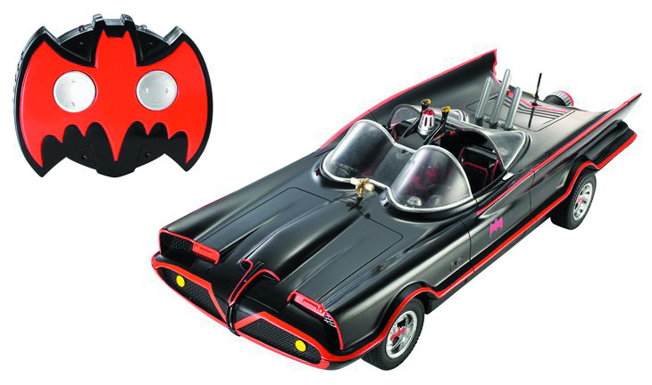 Batman TV series can own the legendary Batmobile and drive it for the very first time! With nearly elite-level decos - down to the curved windshield, rear bat chutes and fire extinguisher, full-function R/C capabilities and a transmitter that looks like it belongs on the utility belt of Batman himself - this 1966 R/C Batmobile is sure to be a favorite of kids and collectors alike!