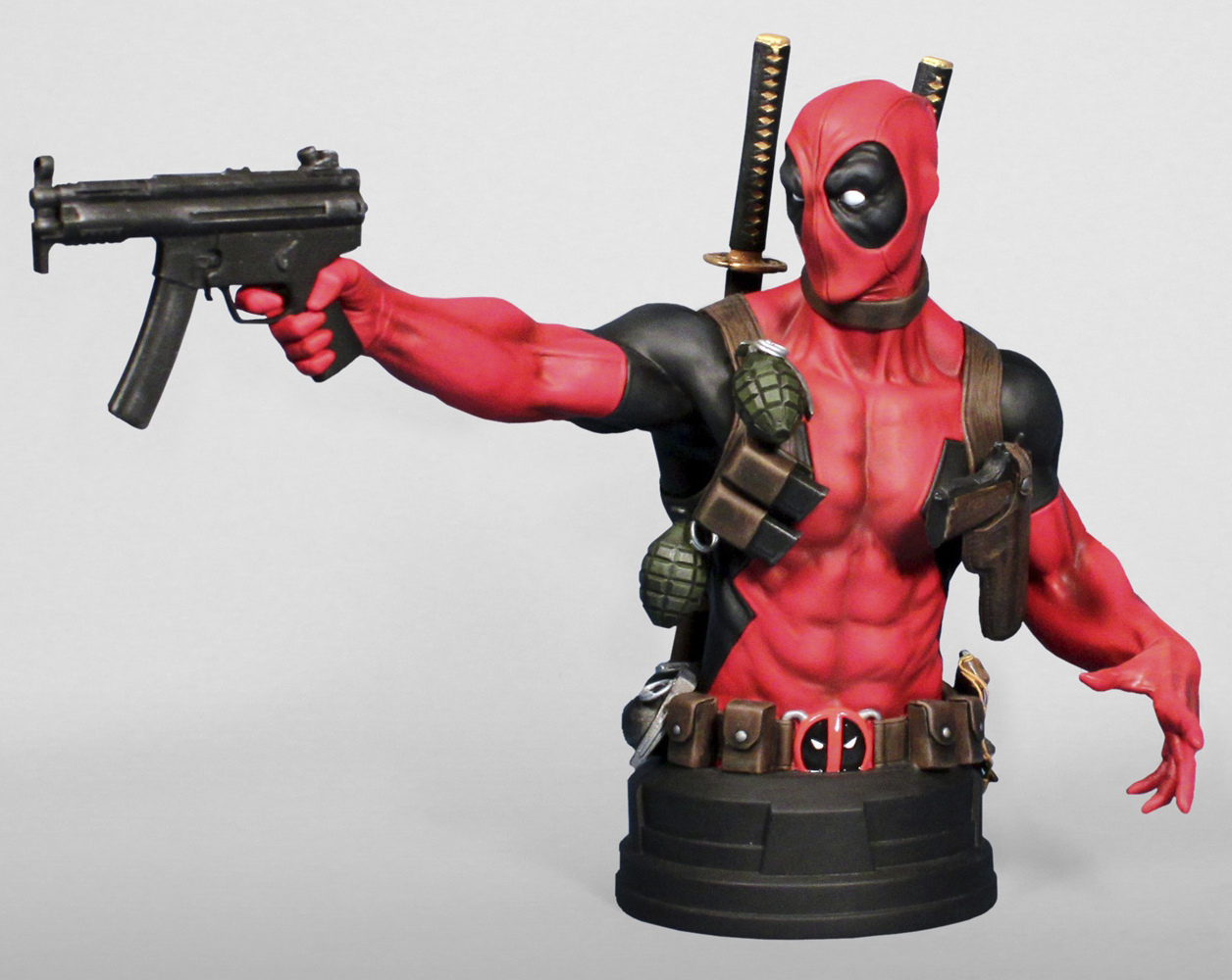 Deadpool Mini Bust is no laughing matter, with Deadpool's signature red and black costume and each of his weapons rendered in loving detail by skilled sculptors. This 1/6-scale mini-bust is hand-painted, individually numbered and comes with a matching Certificate of Authenticity.