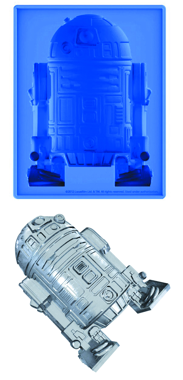 A KOTOBUKIYA Japanese import! With the Lightsaber Chopsticks and Star Wars Silicone Trays Kotobukiya brought a Star Wars revolution to the tables of fans everywhere. Now there's an all new series of deluxe, extra large silicone ice trays! Coming to you from a galaxy far, far away, is the R2-D2 DX SILICONE ICE TRAY! Perfect for everything from family fun to Star Wars themed parties, this handy tray lets you capture ice, chocolate, jelly, or anything else you can think of in the familiar shape of everyone's favorite astromech droid. Accurately replicating the look of R2-D2 from all of the Star Wars films, the sturdy silicone is both heat and ice resistant making it almost as durable as the droid himself! The new Deluxe-sized blue mold creates a single R2 ice cube that is three times larger than what comes out of the previous R2-D2 silicone tray; the Deluxe version stands nearly 10 inches tall! The DX silicone trays are the perfect complement to the Lightsaber Chopsticks (sold separately).
