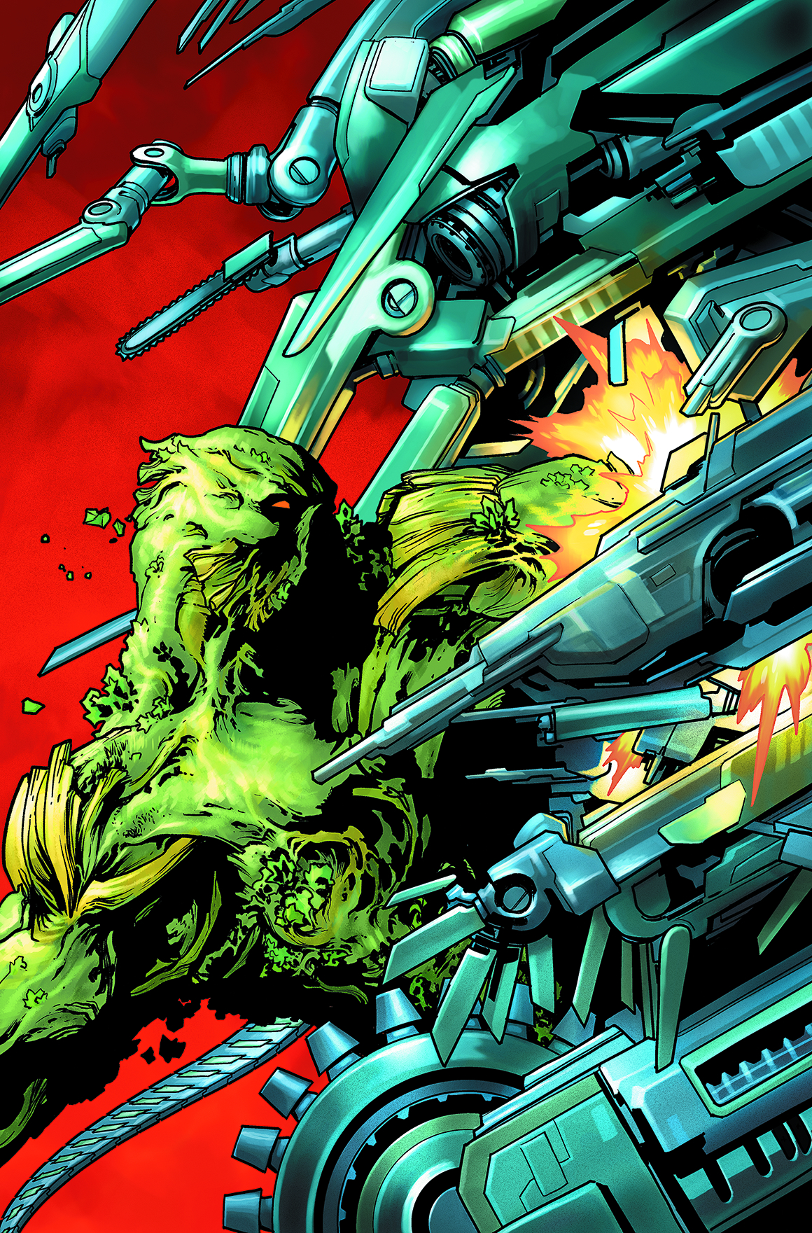 "THE MACHINE QUEEN," part 1: Between the Red, the Rot, the Green and the Grey, Swamp Thing thought he'd seen it all. But now he's about to meet the avatar of a whole new Kingdom whose impact on the lives of all humanity goes deeper than even the Green's - the Machine! And when Swampy gets the opportunity to step aside and allow the Machine to take over, he may have good reason to accept the offer!