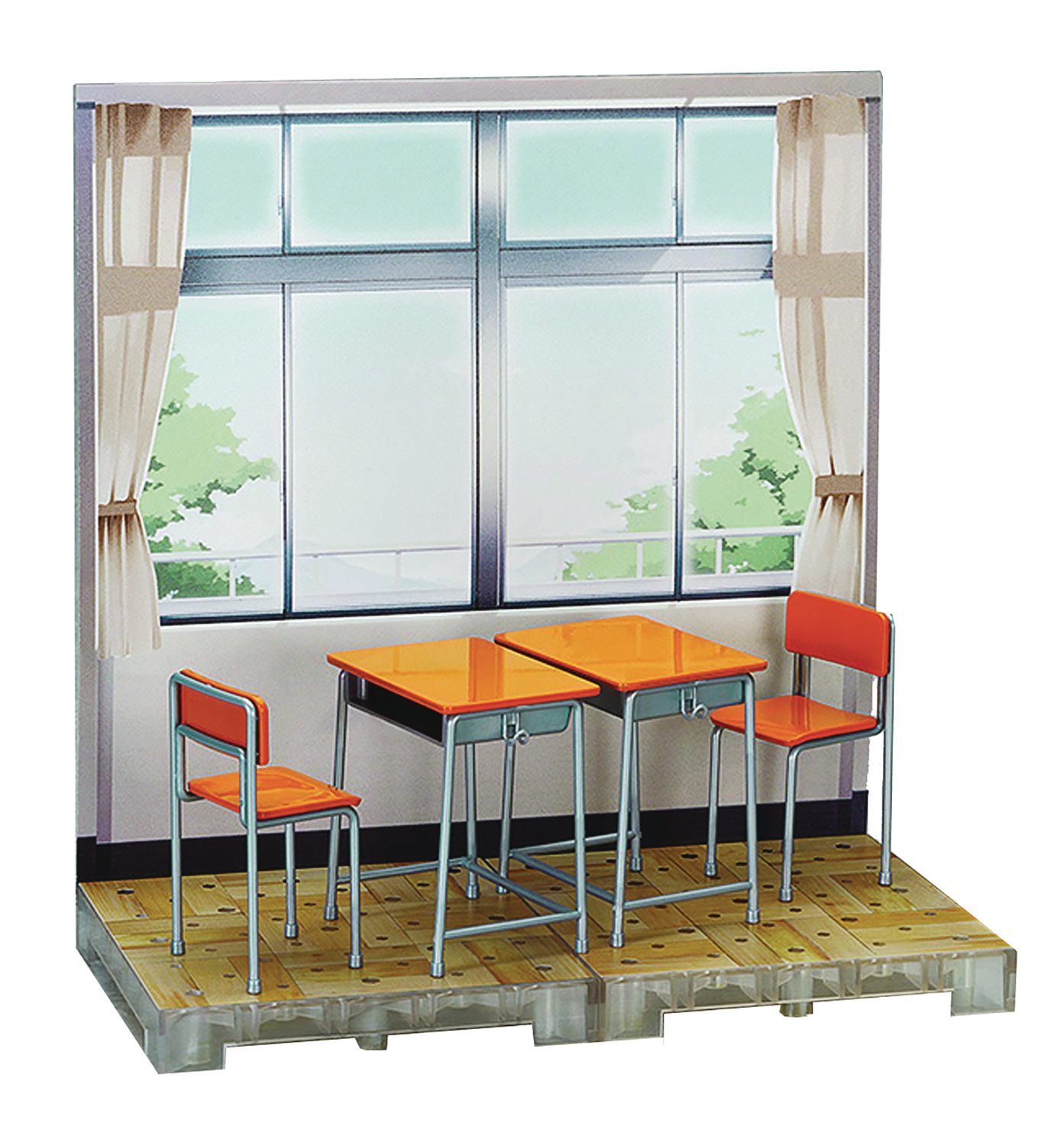 From Max Factory. More ways to enjoy figma figures! The figmaPLUS series is a collection of figma-sized diorama sets to display your figma figures with! The classroom set comes with a base unit that matches the atmosphere of the classroom theme, as well as a number of plastic model kits and paper-craft kits for items that are likely to be found in a classroom! Display your favorite figmas in a lovely classroom setting! Set contains Classroom-themed Base Unit x2, Flat Joint x2, Binder x8, School Desk x2, School Chair x2, Papercraft Background x1.