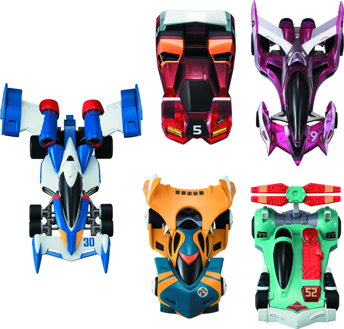 From MegaHouse. Recreate your favorite races from the hit anime with these 2 3/4" to 3" long replicas of cars #30 (Kazami), #21 (Lope), #52 (Heinel), #5 (Shinjyo) and #9 (Kaga), complete with decals and pit crew minifigures.