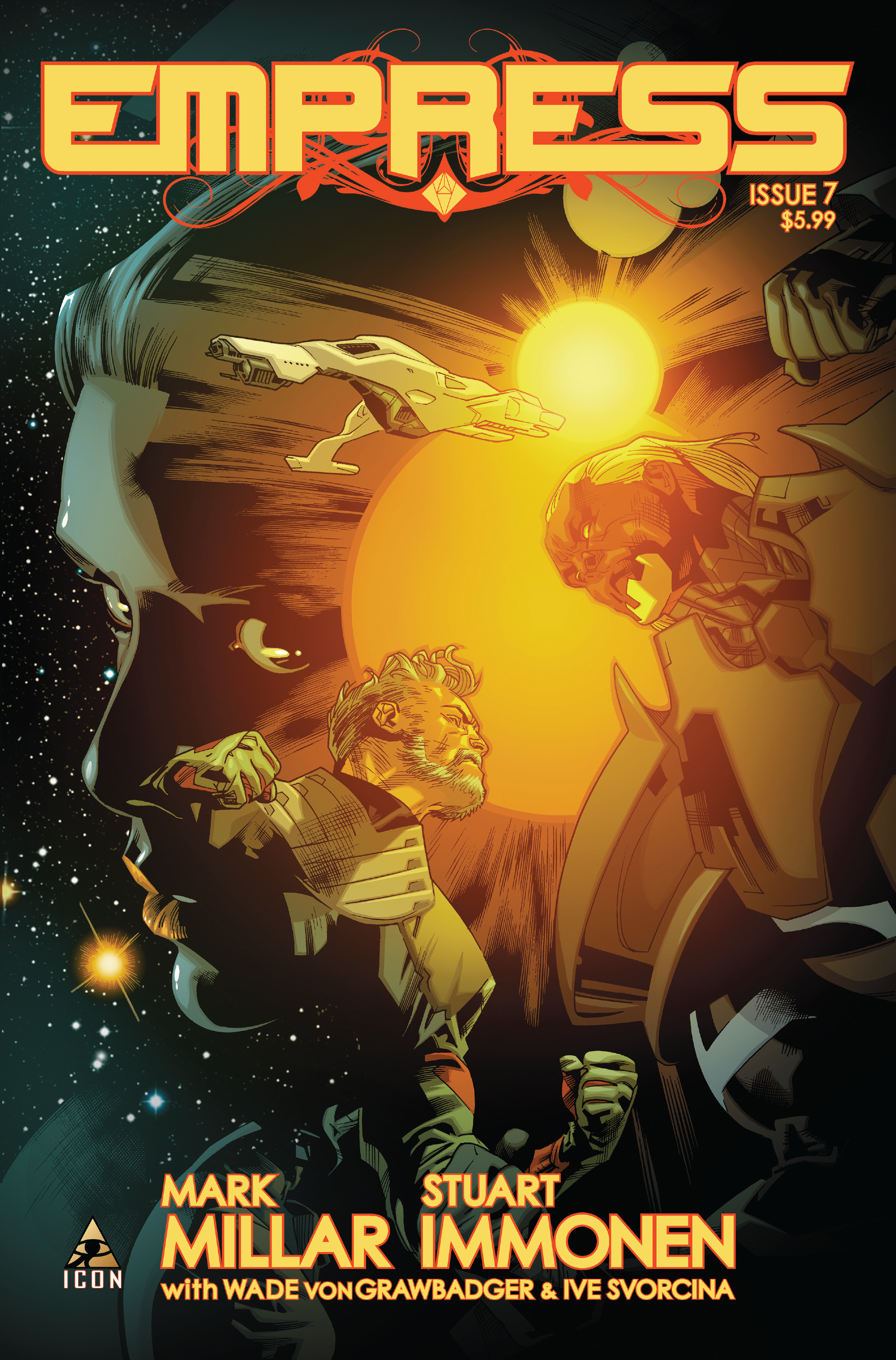 This astounding series climax shows family turn against each other and old secrets crawl out of the woodwork as Morax finally hunts his wife and children down. An action-packed, gory end to the first volume of Millar and Immonen's sci fi space opera.