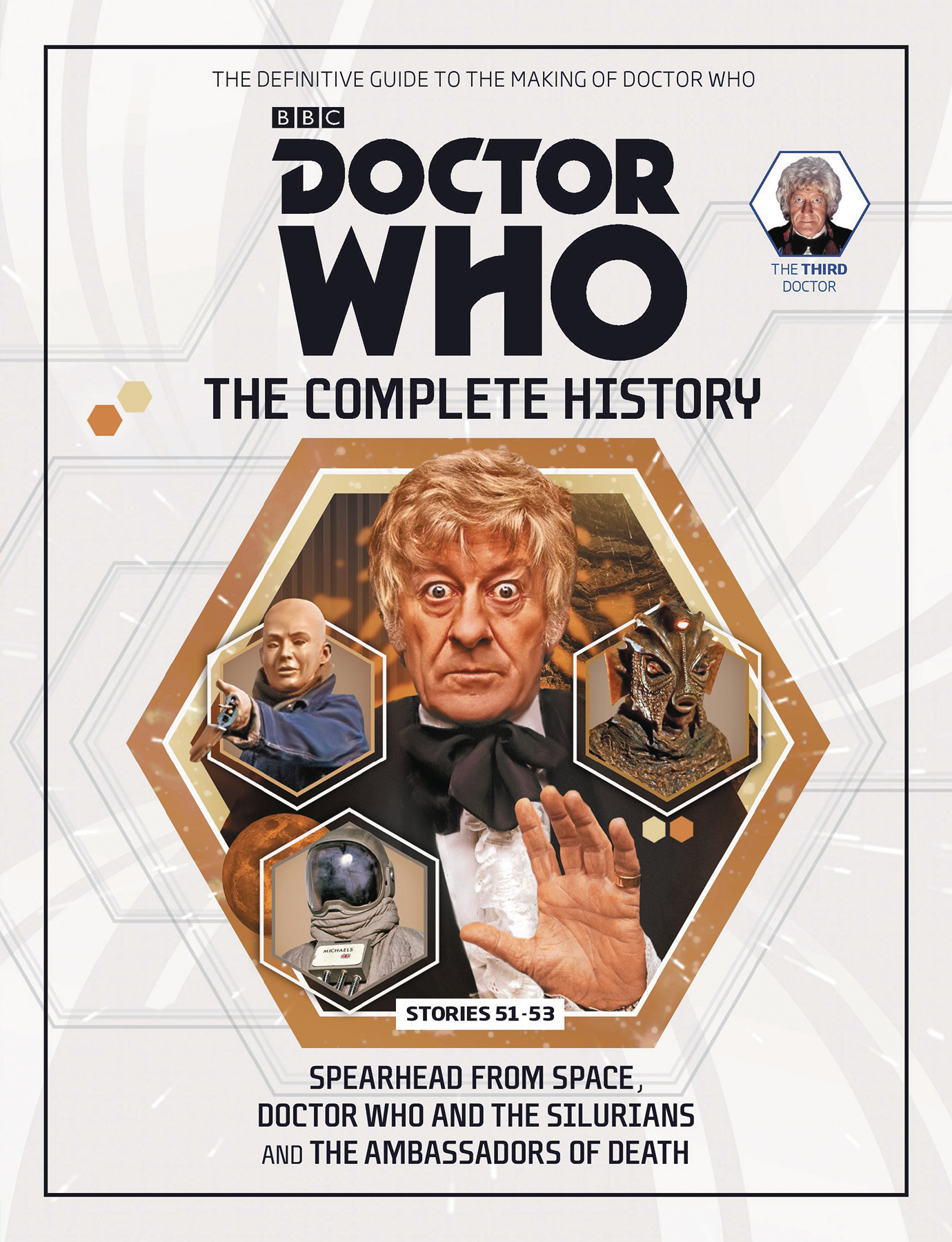 Doctor Who continues with this volume on four stories of the third Doctor from season 7! Stories covered include "Spearhead from Space" (the first third Doctor story and the first appearance of the Autons), "Doctor Who and the Silurians" (the first apperance of the Silurians), and "The Ambassadors of Death." Illustrated throughout with photographs from the archives and in full-color, this hardcover volume features story summaries, character and actor profiles, pre- and post-production notes, broadcast reaction, and much more.