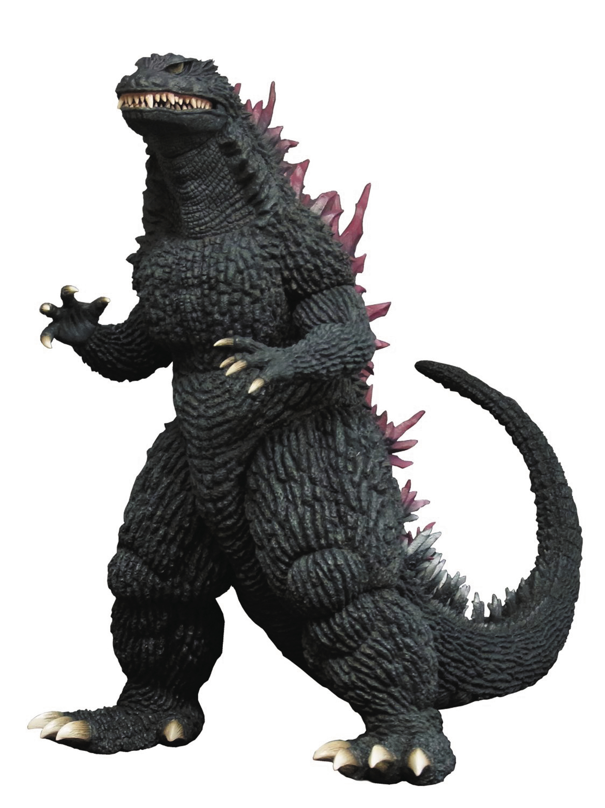 Godzilla series (twenty-third by Toho), a newly re-designed Godzilla faces the all-new kaiju known as Orga. Hailed by many fans as one of the more popular designs for the King Kaiju, this version features a pronounced, toothy snout and massive, pointy dorsal spines. This 12" scale figure perfectly captures the "force of nature" that Godzilla has become.