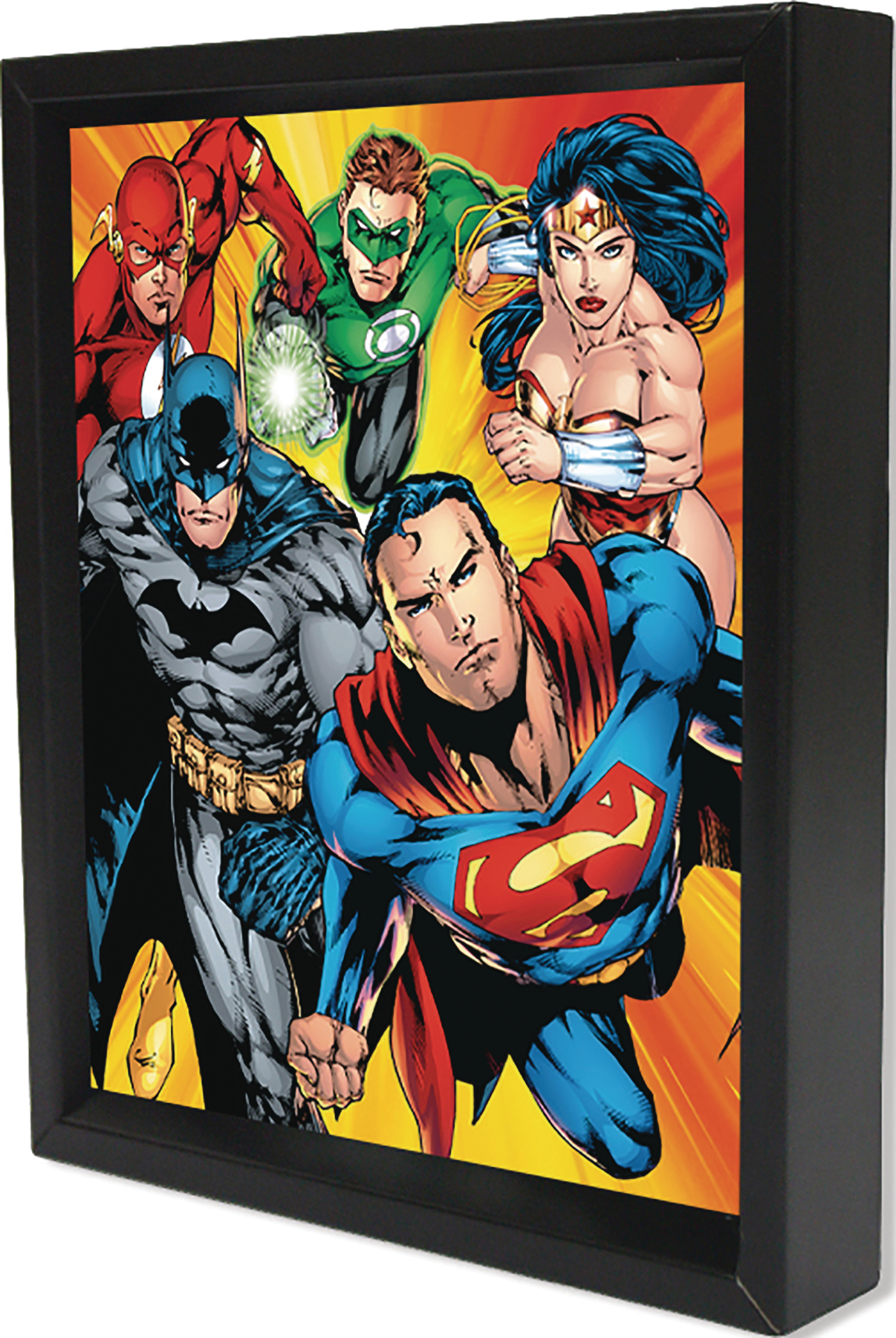 From Pyramid America. Touch up your home decor with five new DC Comics-themed shadowboxes! Each features a dynamic image of some of your favorite characters and can be wall-mounted. Each shadowbox features a lenticular image and measures 11 1/4" x 9 1/4" x 1 3/4". Choose from