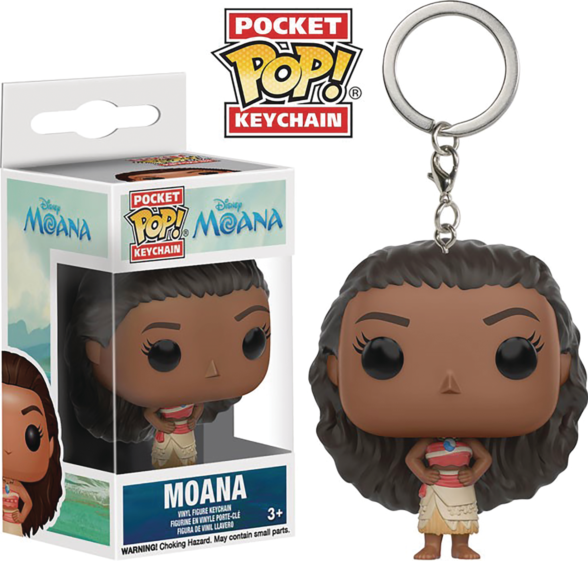Moana in Pocket POP! keychain form. Each keyring figure is around 1 1/2 in tall and comes complete with a ring to attach to your keys, bag or other items. Choose from