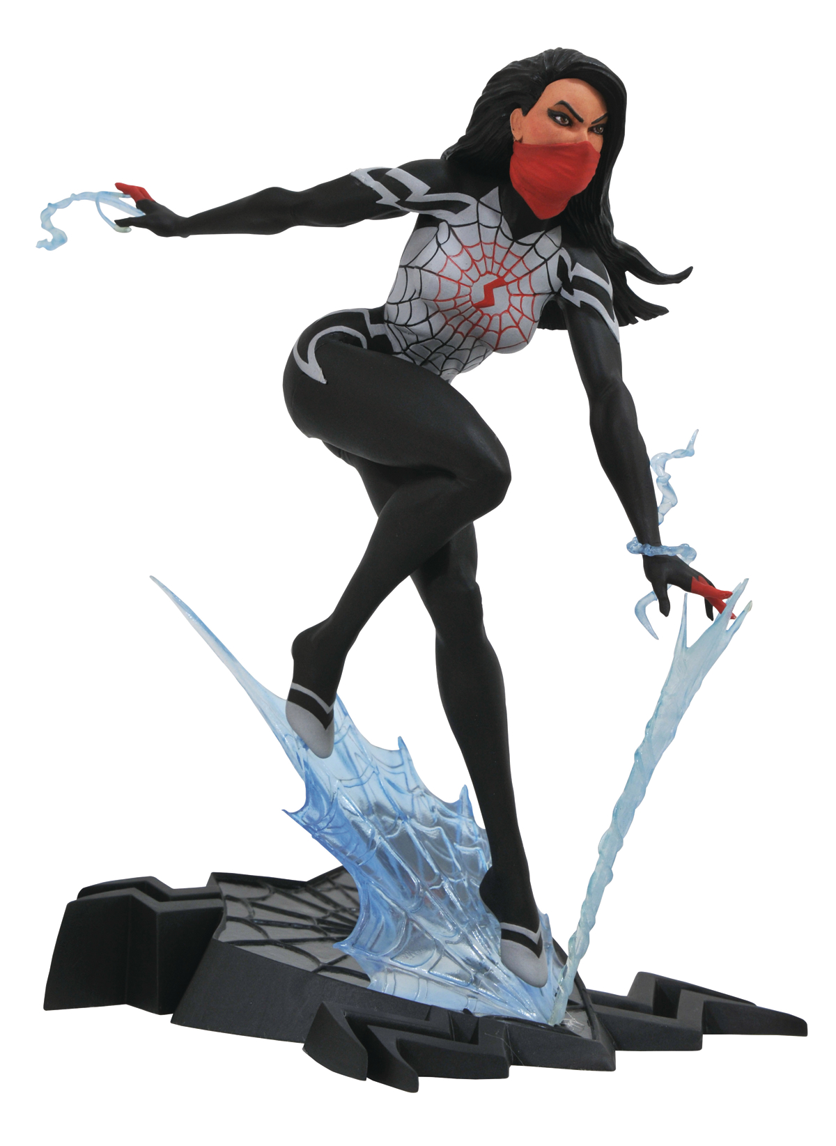 A Diamond Select Toys release! One of the Marvel Universe's newest Spider-people is now one of the newest Marvel Gallery PVCs! Cindy Moon, the second victim of the spider that made Peter Parker Spider-Man, leaps into action as a 9-inch-scale PVC Diorama, and spinning a web on a spider-symbol base. Measuring approximately 9 inches tall, this PVC sculpture features detailed sculpting and paint applications, and is in scale to all other Gallery and Femme Fatales figures. Packaged in a full-color window box. Sculpted by Alejandro Pereira!