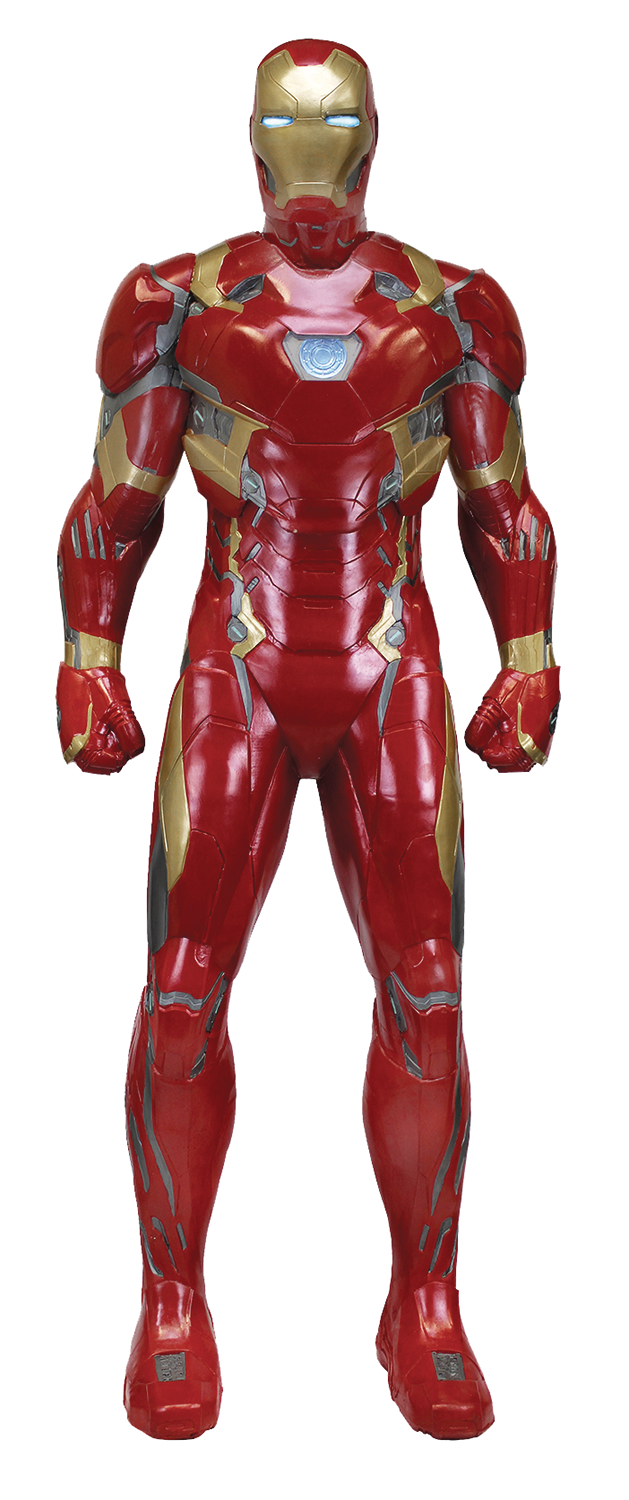 Captain America: Civil War will stand guard in any room, from home to office to retail environments! Iron Man stands 6 feet 5 inches tall. The figure is made of foam rubber and latex that's carefully hand-painted for realistic detail. Very simple assembly required; assembly and care instructions included.