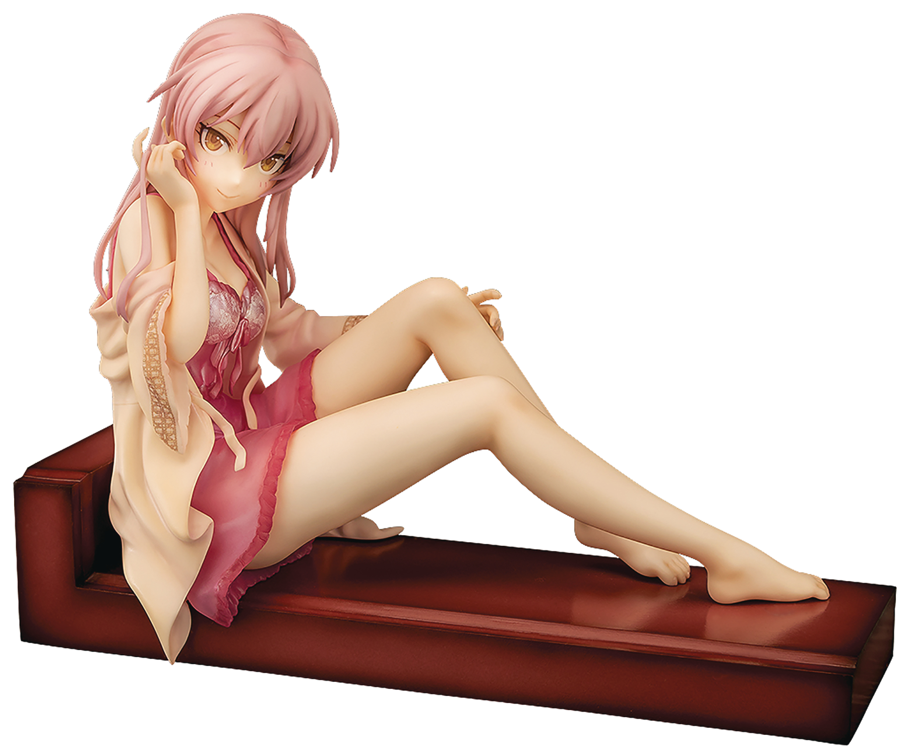 Mika Jougasaki relaxing after a long day of practicing! Dressed in a frilly nightgown, this 1/8-scale figure features a sleek sitting base. Add this casual