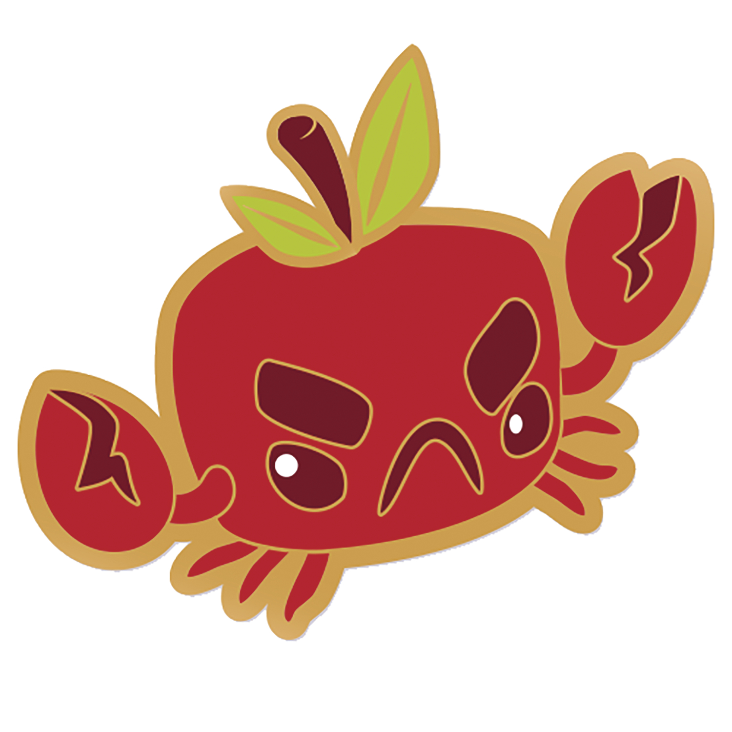 From Inki-Drop. This sassy lil' Crabapple matches the other Crabapple Cousins pin (released in 2015). This hard enamel pin measures 1.25" wide by 1" tall and features a metal clutch backing. Individually boarded and bagged.