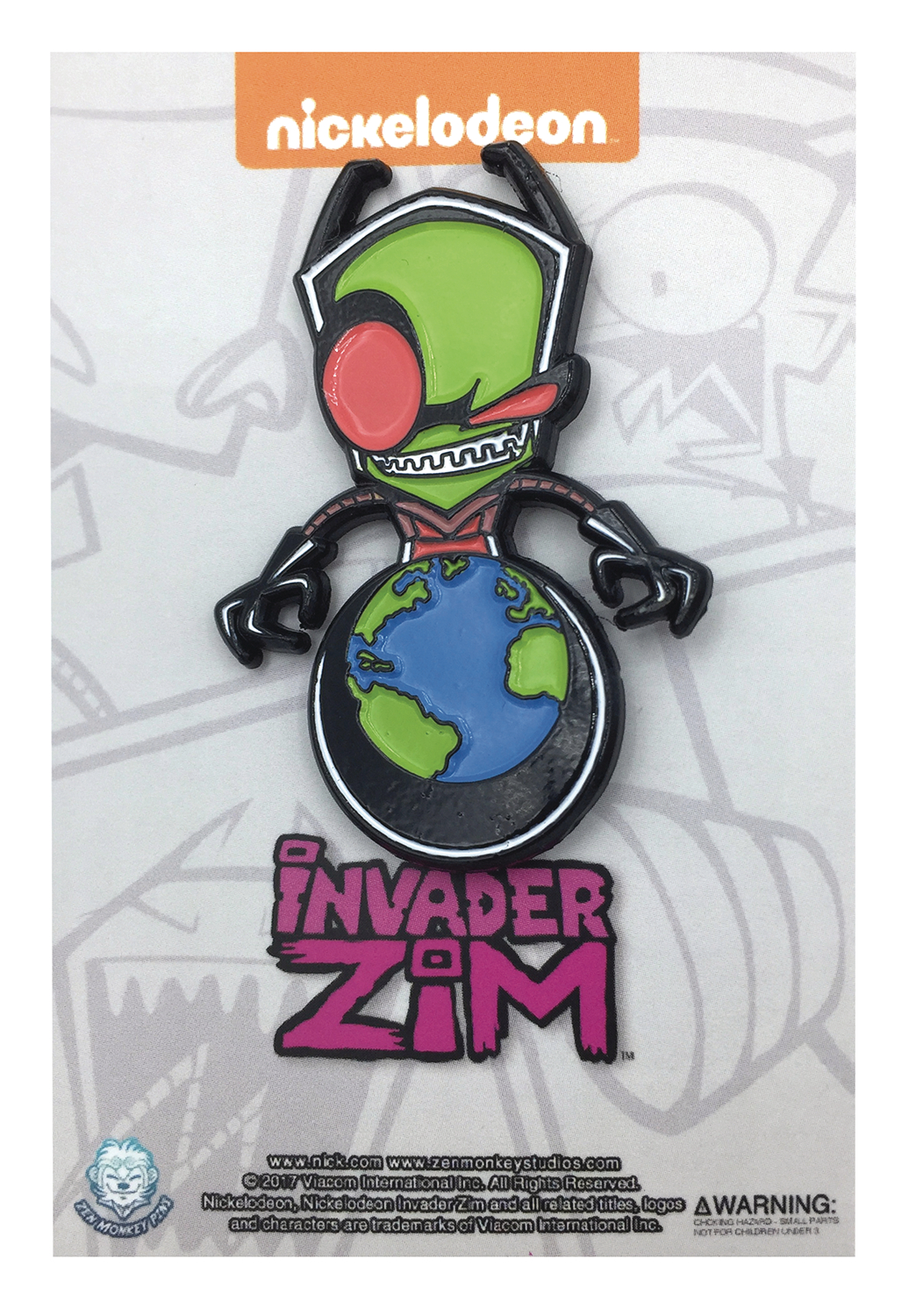 From Zen Monkey Studios. This Invader Zim soft enamel pin measures about 1.75" In height and come packaged on a colorful backing card.