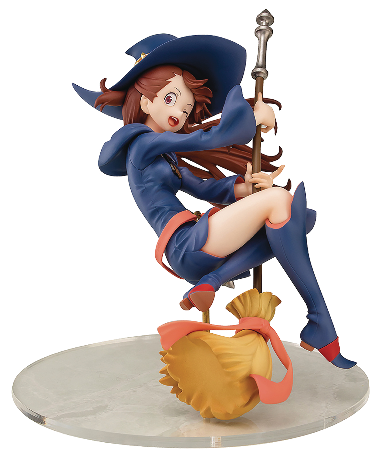 Atsuko Kagari! The ever-energetic Atsuko is featured on her broom in a lively pose. Her charming smile is sure to please everyone that looks her way! This painted ABS&PVC figure stands approximately 6" tall. Stand included.