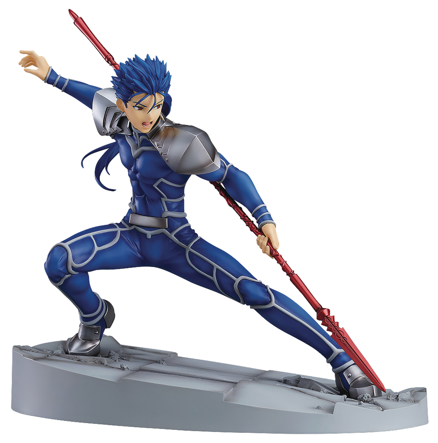 Fate/Grand Order comes a 1/8-scale figure of Lancer-class servant, Cu Chulainn. Using the craft essence "The Crimson Land of Shadows" as a basis, the figure features him in his default costume. He's holding his shining red spear "Gáe Bolg" while taking a masculine stance, as though in the middle of the action. Enjoy his lean body, hair blown back by the wind and the rest of the numerous highlights this figure has to offer.