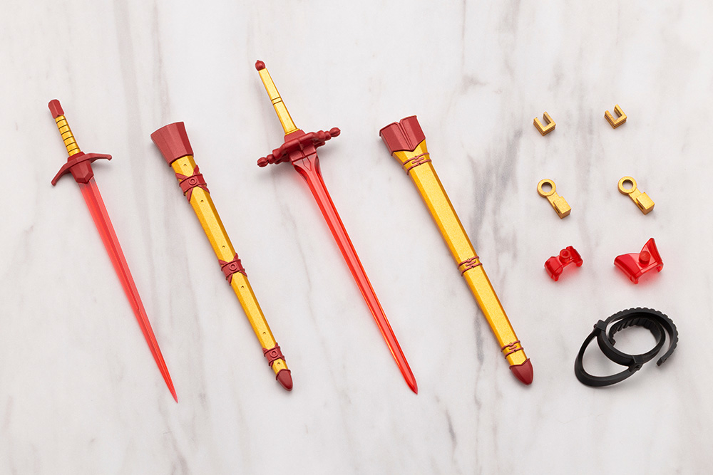 The ninth installment in the weapon series specially designed for female character plastic model kits, VIRTUOUS STYLE, is a FLAMERITE weapon set of fire-imbued swords.