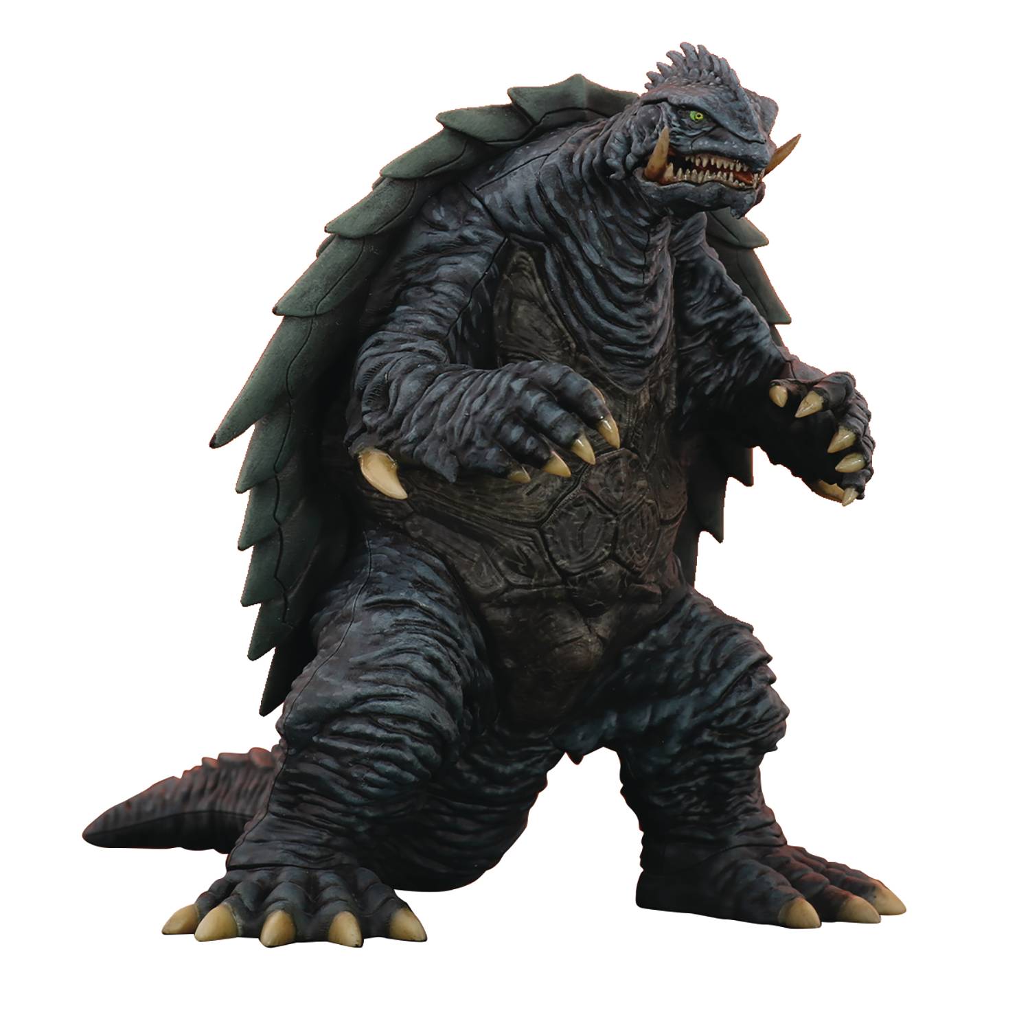 From X-Plus. Gamera (1999) from the critically acclaimed kaiju film, Gamera 3: Revenge of Iris, released in 1999, makes its debut as a 1/700 scale plastic model! The knowledge and experience gained from various series, such as the Daikaiju and DefoReal series, has been poured into this plastic model of Gamera (1999) that stands at approximately 11.5cm tall and features details which have been carefully condensed. Additionally, being a 1/700 scale model, it can work well with countless other models to create a truly impressive collection. The mouth can be reproduced open or closed by replacing the chin part. This model also features the shell, Gamera's most distinctive feature, which has had all its parts molded piece by piece. Simply assembling it will immediately make it feel much more dimensional! Don't miss this chance to get your hands on Gamera (1999).