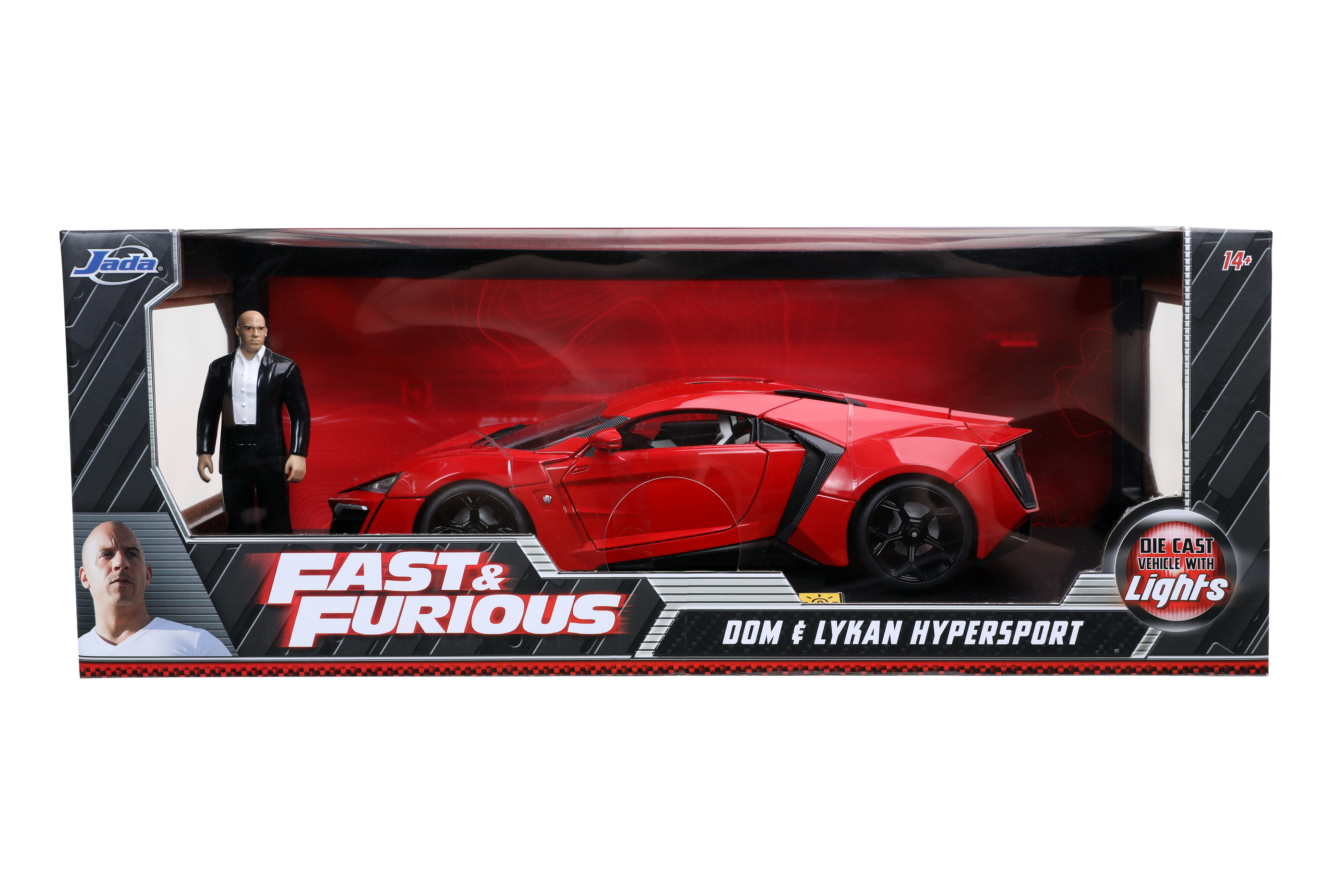 From Jada Toys. Help Dom and his crew as they continue their global exploits in the unstoppable franchise built on speed! Featuring working headlights and tail lights, this 1:18 die-cast vehicle also includes a collectable 3" die-cast figure! With styling cues directly from the movie, these vehicles are sure to live up to the standards of fans and collectors alike. Collect them all to assemble your own fast team and save the day!