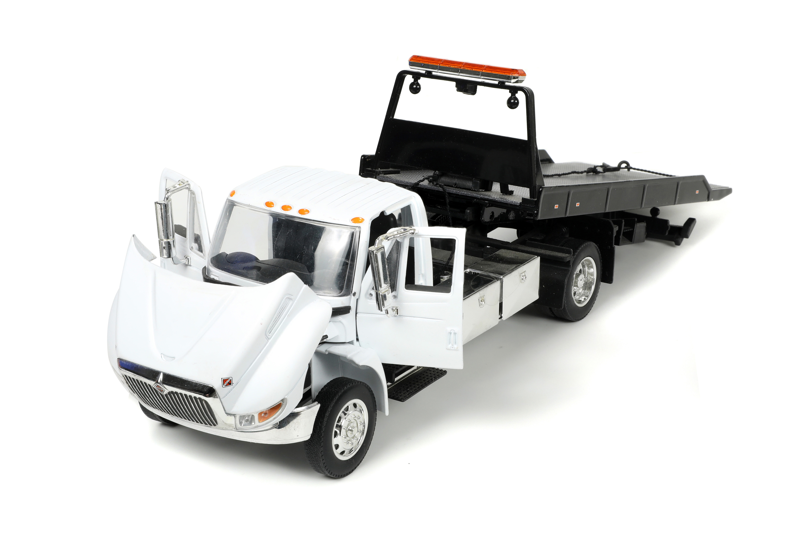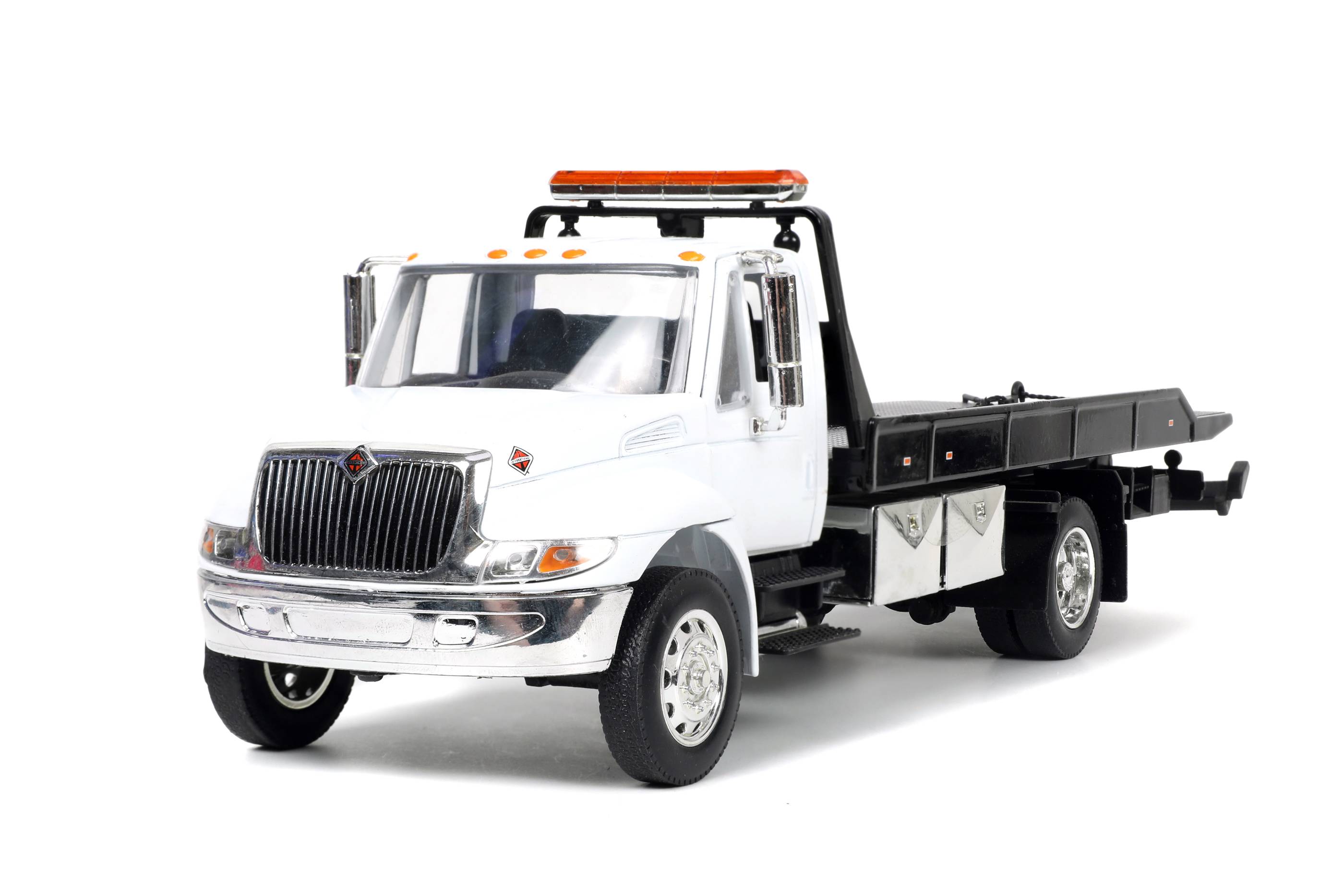 From Jada Toys. Make an impression with this awesome tow truck from Jada Toys! This International DuraStar 4400 Flatbed Tow Truck is a 1/24 scale model replica. It comes in white and features openable hood and doors, working flatbed and side tool boxes. It's an exceptional selection for any tow truck collection, and wonderful for faithful International admirers!