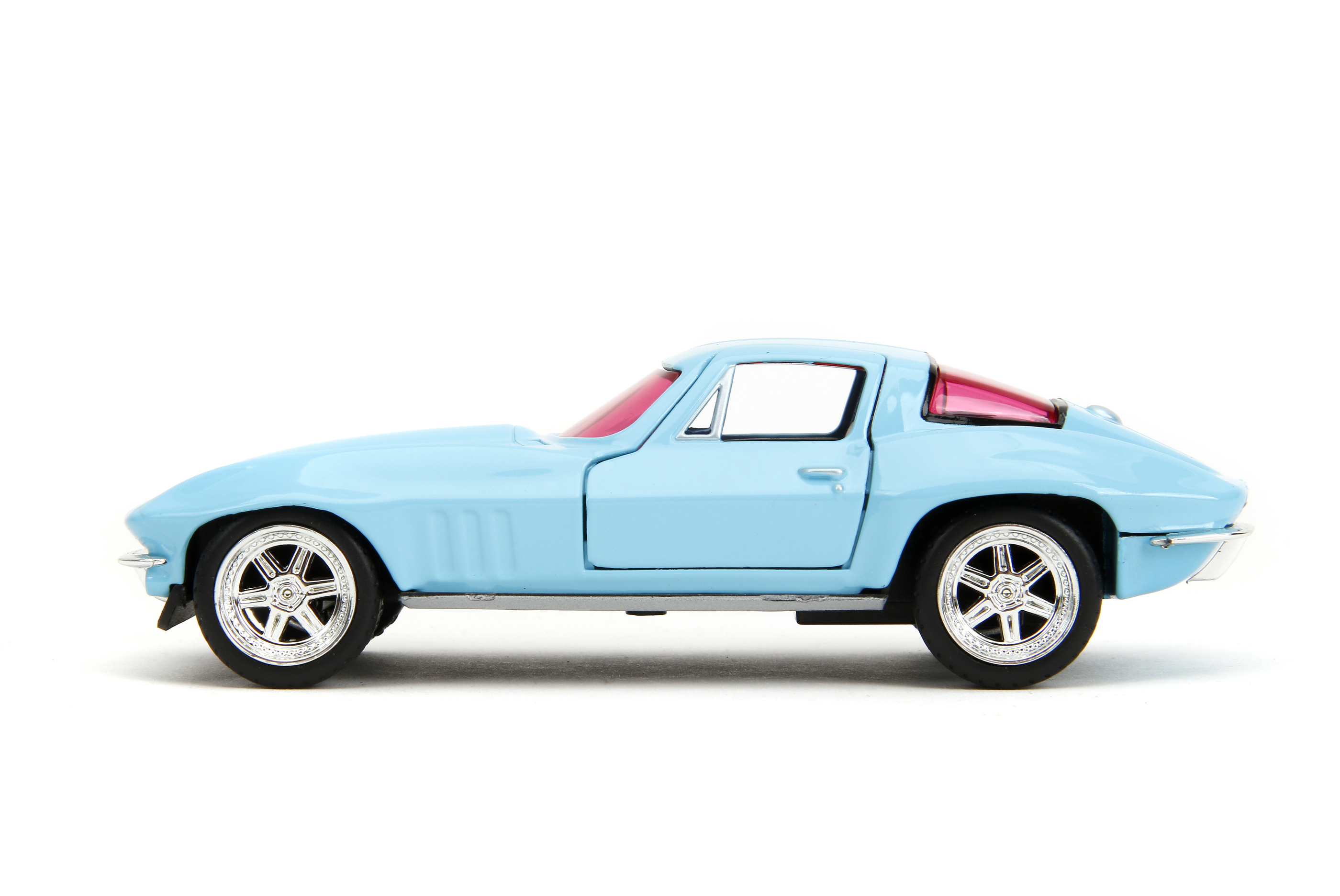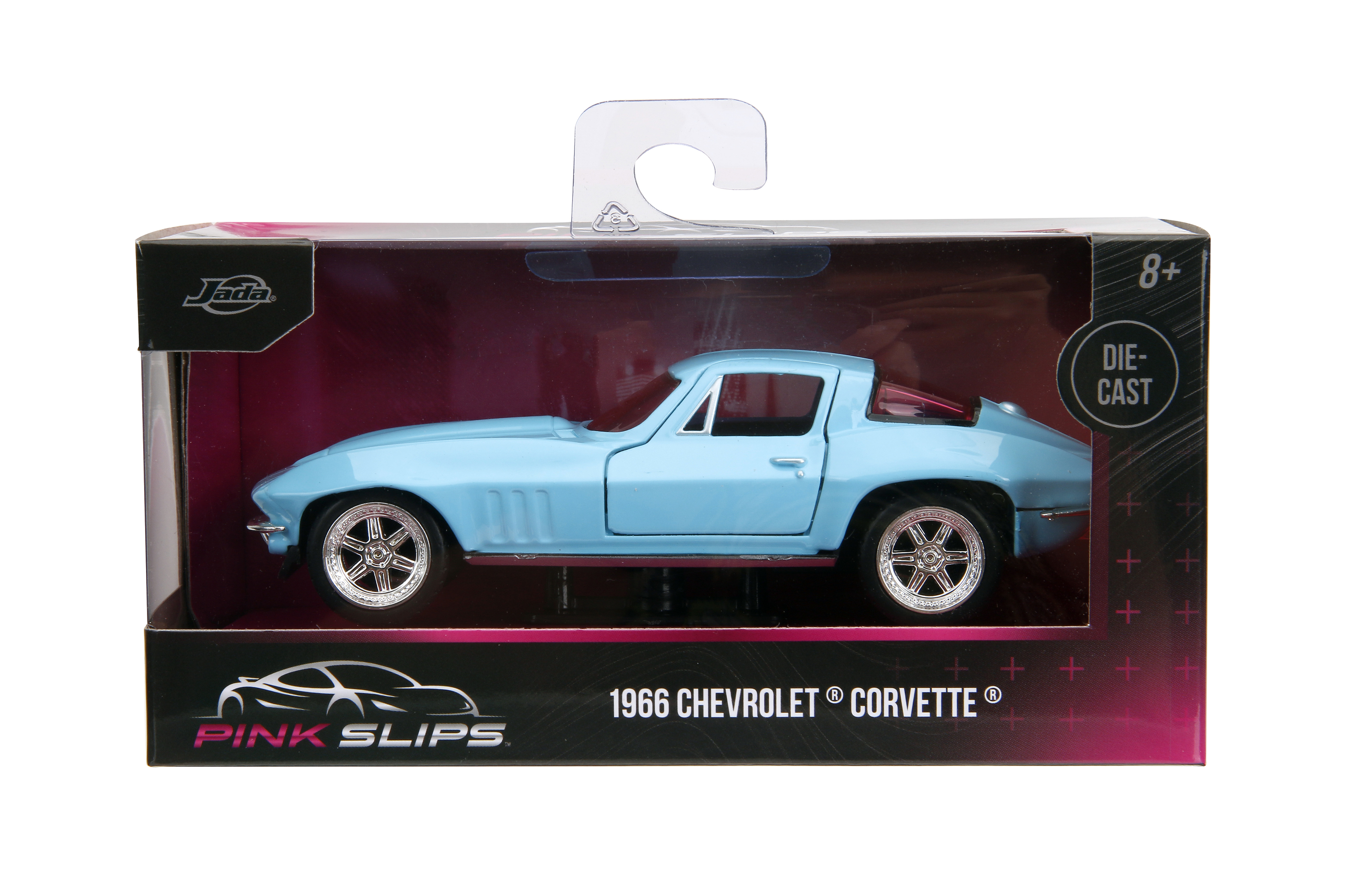 From Jada Toys. Inspired by the evolving trends in car culture, Pink Slips embraces vibrant colors, fashion-forward designs, and statement-making finishes that stand out in any collection. Made of diecast metal with some plastic parts, this officially licensed premium model features true-to-scale detail, real rubber tires, opening doors, and a finely crafted interior and exterior.