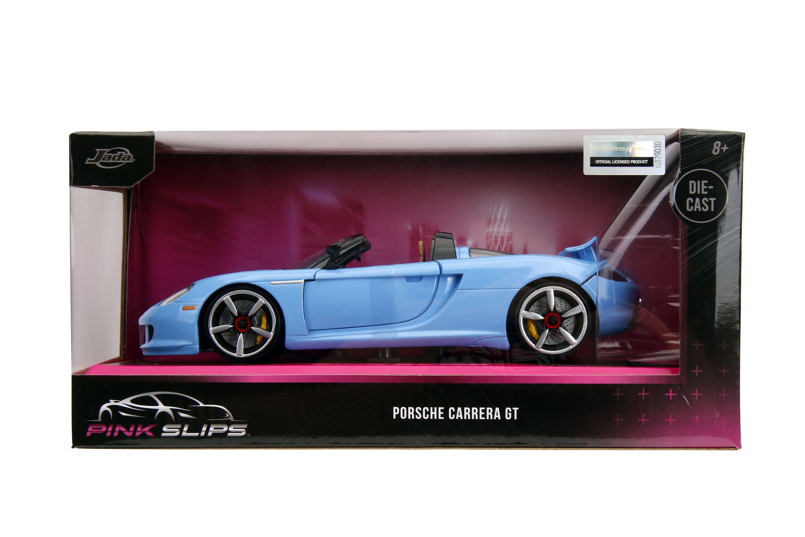 From Jada Toys. Inspired by the evolving trends in car culture, Pink Slips embraces vibrant colors, fashion-forward designs, and statement-making finishes that stand out in any collection. Made of diecast metal with some plastic parts, this officially licensed premium model features true-to-scale detail, real rubber tires, opening doors, and a finely crafted interior and exterior.