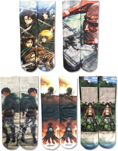 ATTACK ON TITAN SUBLIMATION SET 1 5 PACK SOCKS