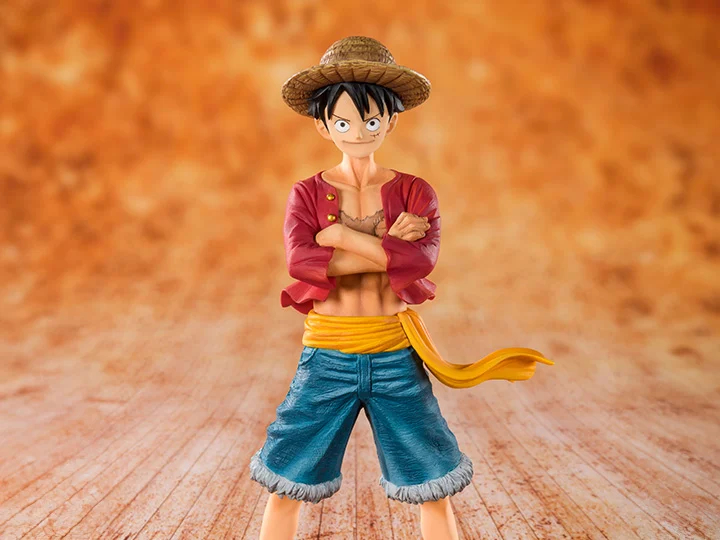 From Tamashii Nations. Popular characters from the Anime edition of One Piece join FigurartsZERO! "Straw Hat" Luffy appears here in his trademark Captain attire of a red shirt, blue shorts, and yellow waistband! A special stage is included in the set. Be sure to add Luffy to your One Piece collection today!