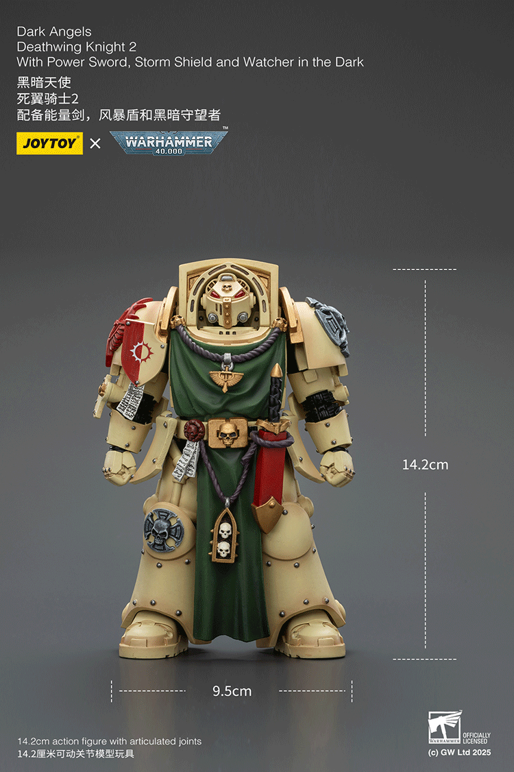 From JoyToy (Beijing) Tech Devco. JoyToy Warhammer Dark Angels Deathwing Knights - A formidable squad of 1/18 scale figures representing the most zealous warriors of the I Legion. Clad in heavily ornamented Terminator armor, these figures come armed with towering storm shields and brutal Maces of Absolution, embodying the unbreakable resolve of the Deathwing. Fully articulated and richly detailed, they are an essential addition for Dark Angels collectors and Horus Heresy enthusiasts alike.