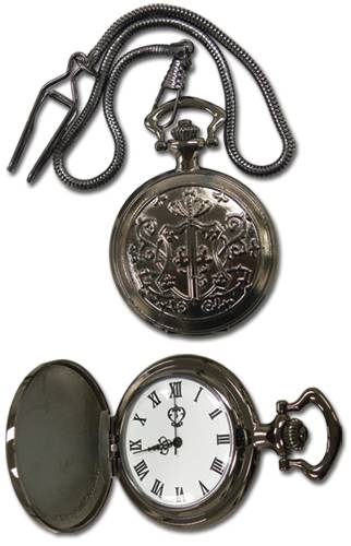 From Great Eastern Entertainment. Always be on time with this officially licensed Black Butler pocket watch manufactured by Great Eastern Entertainment. This convenient watch features a chain measuring roughly 20 inches long, which can be worn as a necklace or hung onto a wall as a display! Battery-operated and made from durable metal, this watch is sure to be a perfect gift for fans.