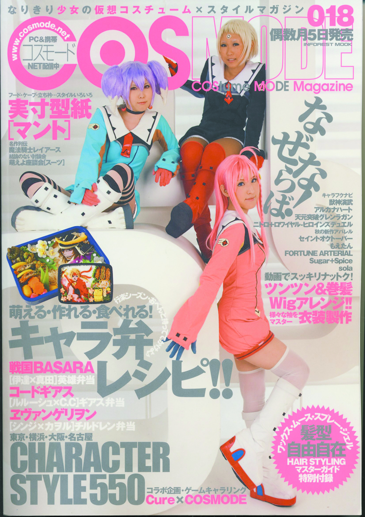 Cosmode is filled with pictures of anime fans and cosplay maniacs in their favorite costumes! Inside, you'll find useful hints to brush up your cosplay techniques, plus articles by professional make-up artists and costume creators. Also, this issue shows hundreds of photos from a cosplay event held in Japan. Plus, a special sewing lesson of how to make a "cloak" with a paper pattern!